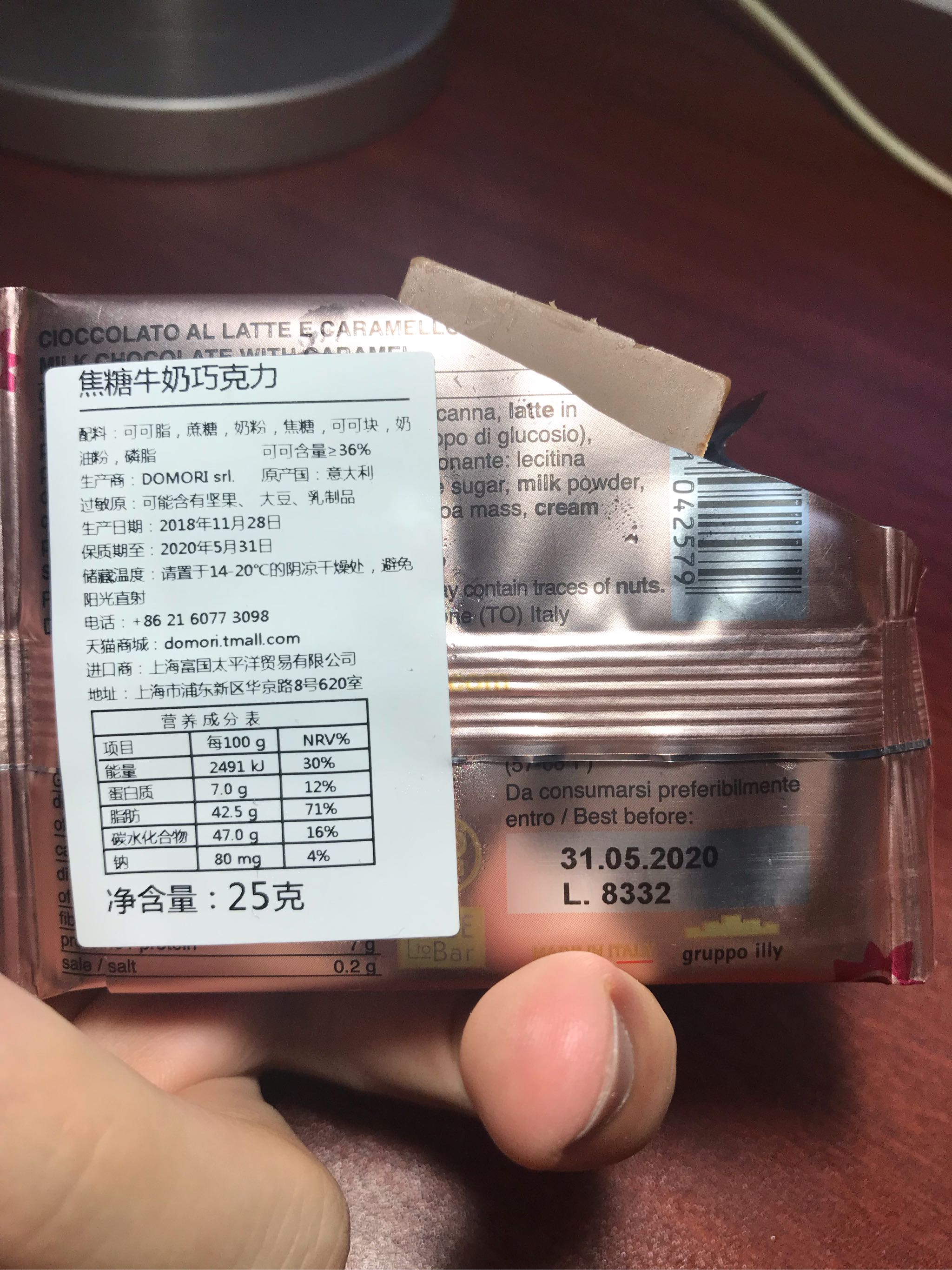 25克的巧克力大小的话在11*7cm左右,塑封完好无损,送到的时候还有一张温馨提示(鉴赏巧克力从可可浓度低的开始