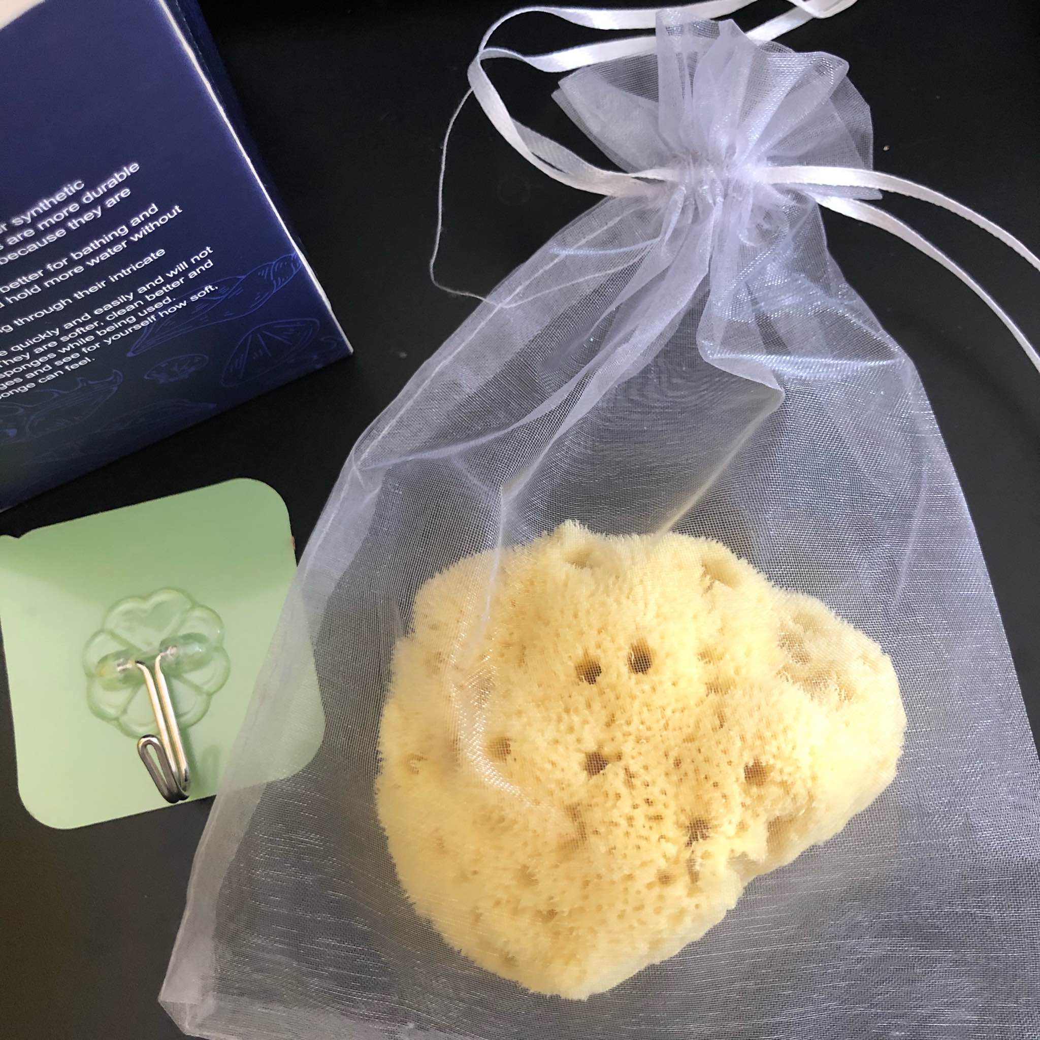 纯天然海绵湿润时变得非常柔软,非常温和。海绵包装精美,附赠了一个欧根纱的袋子和一个无痕挂勾,细心周到的考虑了海绵的收纳问题。