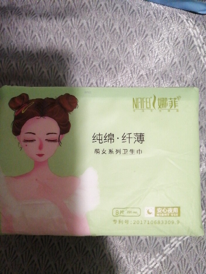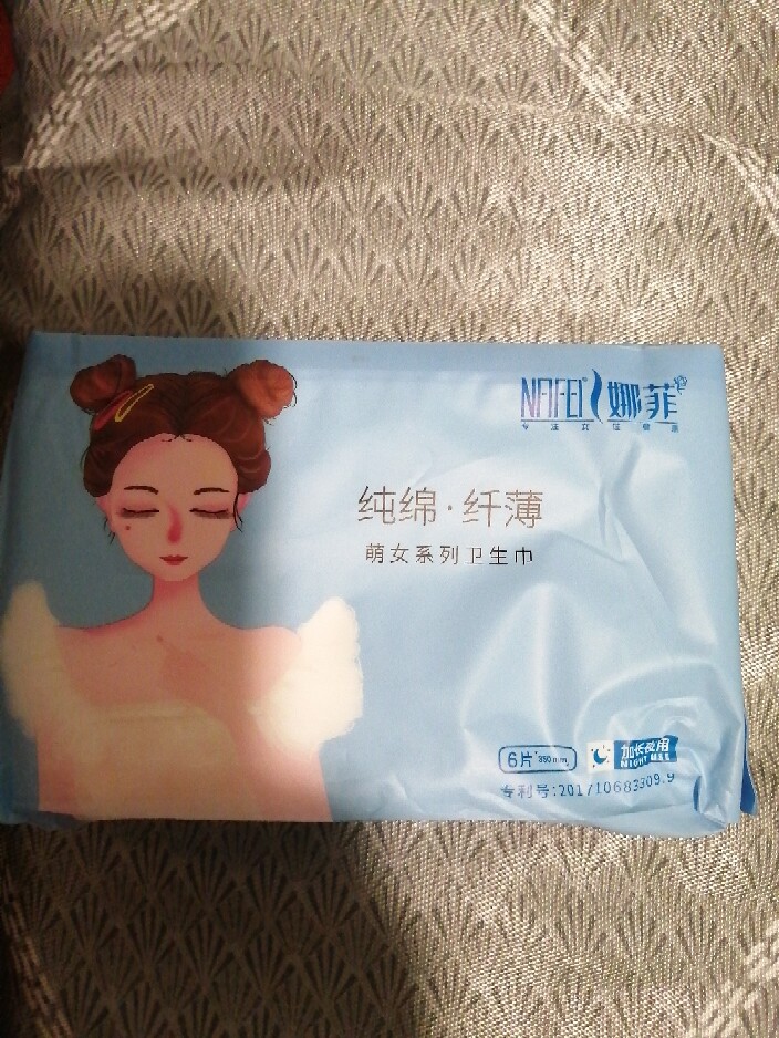 纯棉的,包装比较简洁,也比较薄,使用后感觉还可以做的更好!毕竟现在女孩选择的品牌太多,要做到有市场竞争力还需要更多的卖点!