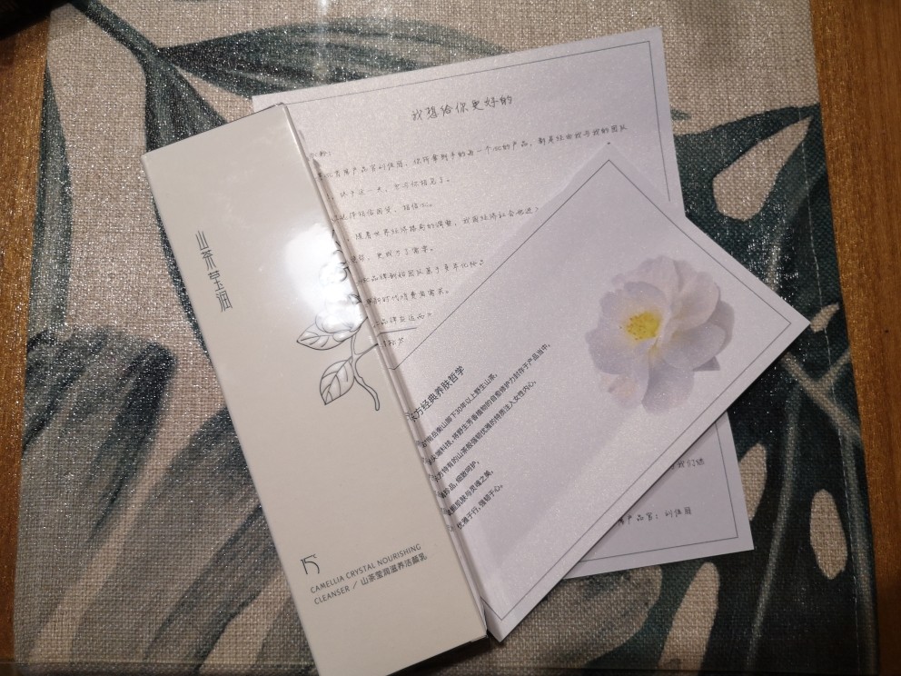 整体包装感觉很舒服,卖家包装的也精致。洗面奶没有什么香味,这点比较失望还以为是山茶花香呢。洗完脸也不干这点好评,本人是混合皮