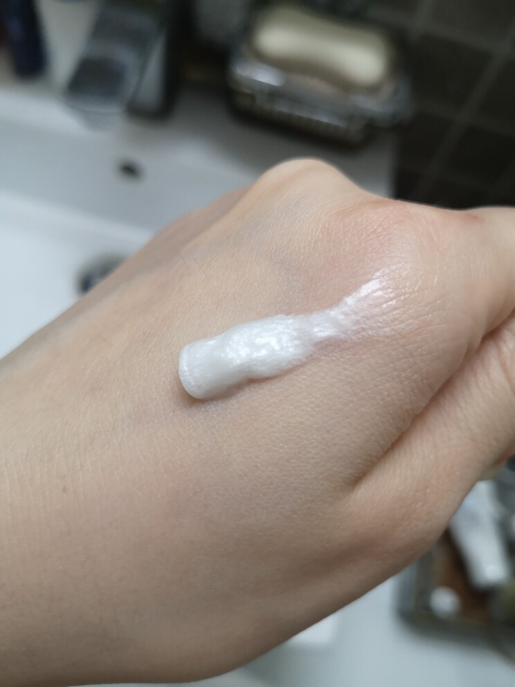 洗面奶挤出来是有点珠光的膏体,质地感觉比较细腻