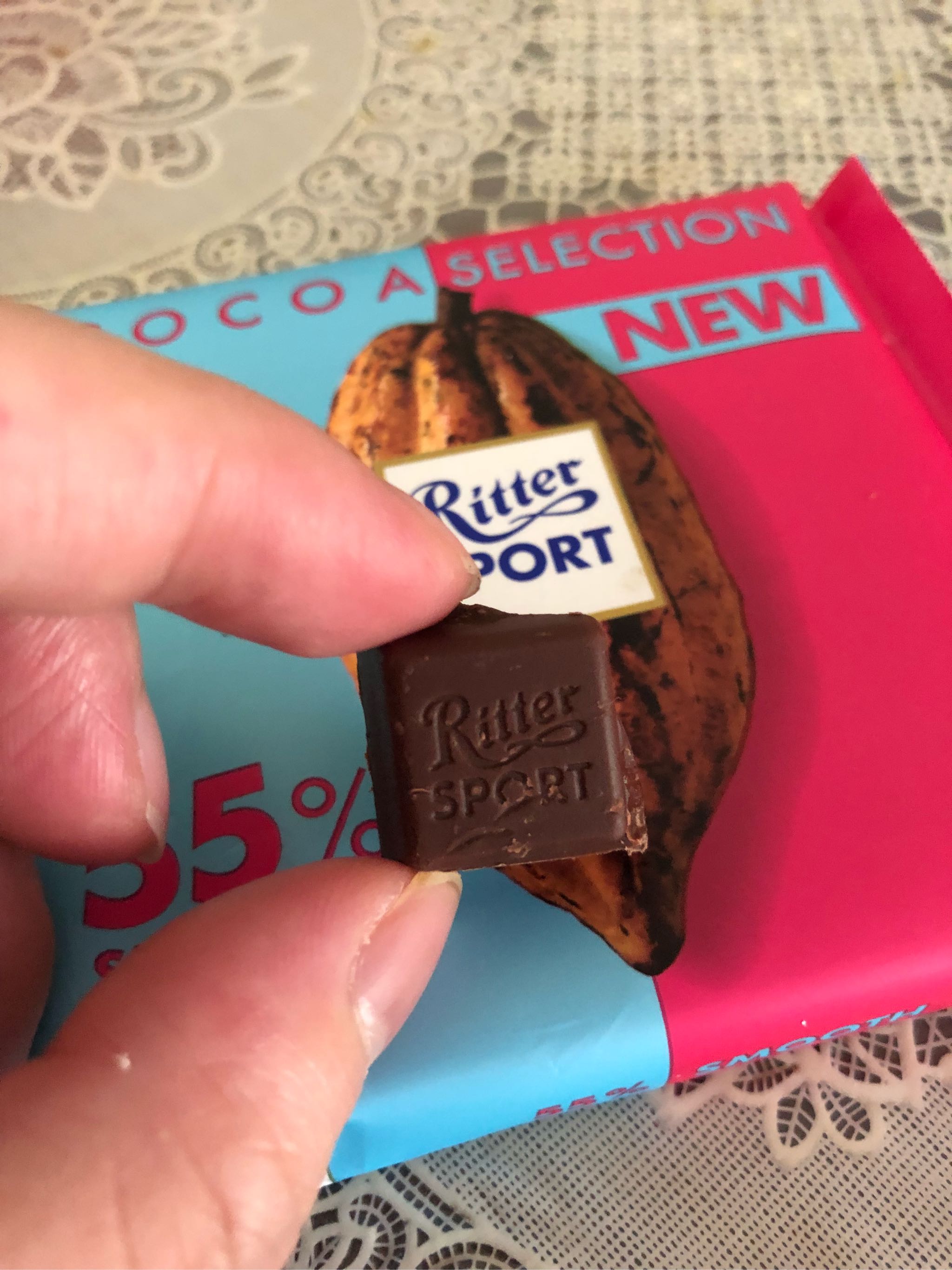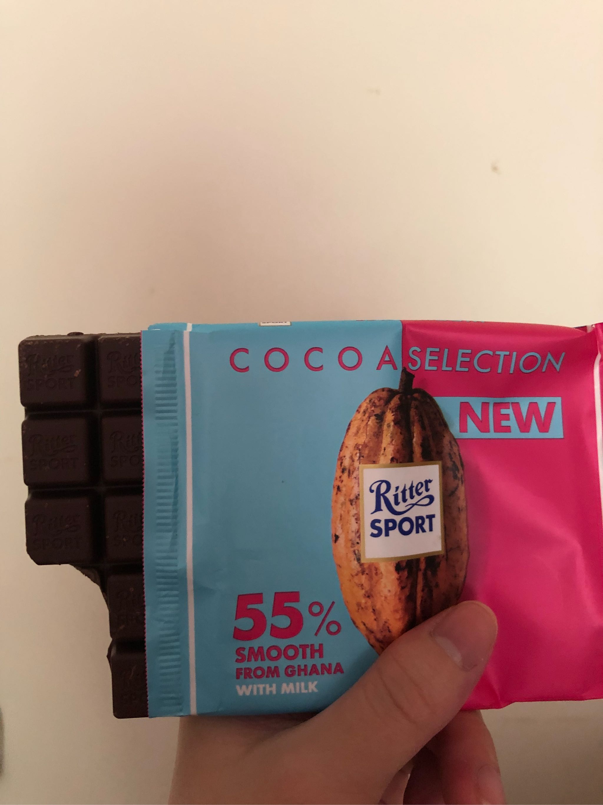 仔细看了下包装才注意到这款是with milk,导致了它真的一点不苦,但没有一般巧克力那么腻,相比较歌帝梵巧克力我更中意这款的甜度