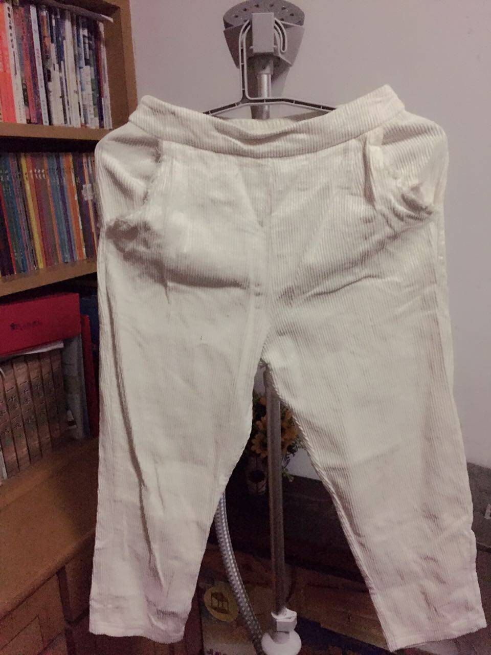 衣服都已经烫好,只好拿出这条裤子来做实验,料子是加厚的灯芯绒,非常厚重。