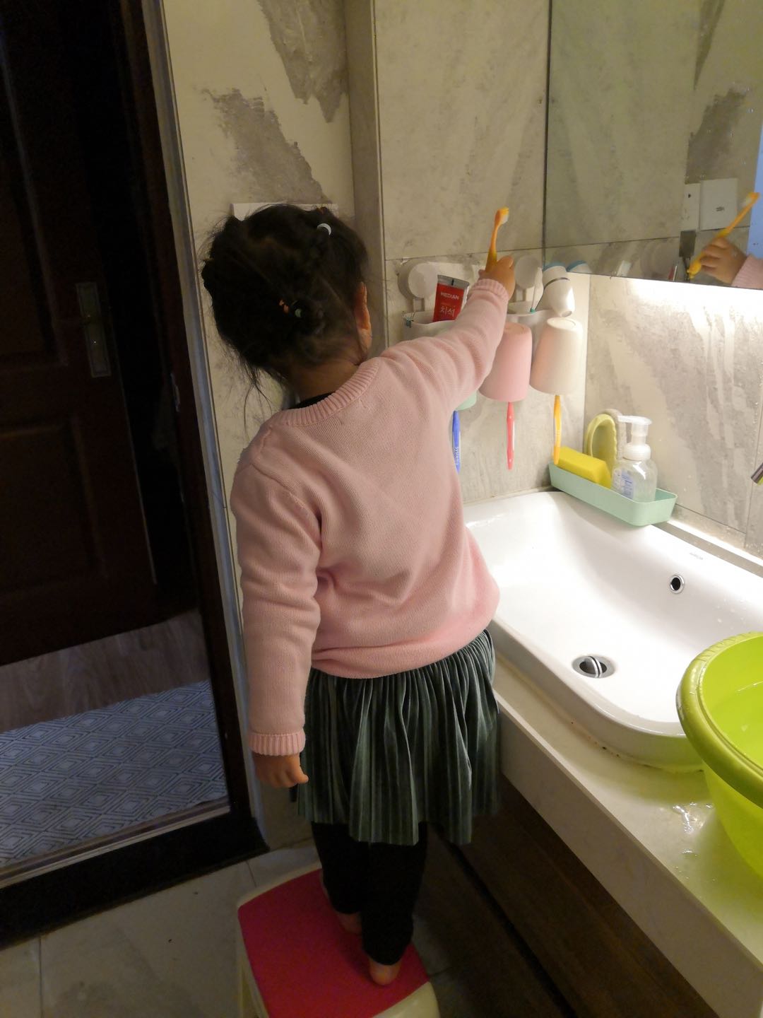 牙膏实物轻巧方便,小朋友完全可以自己一只手拿好。