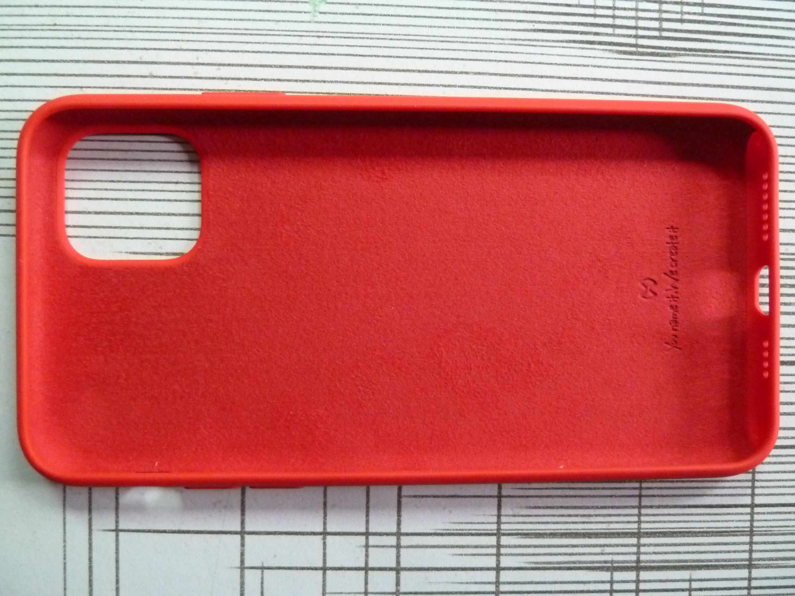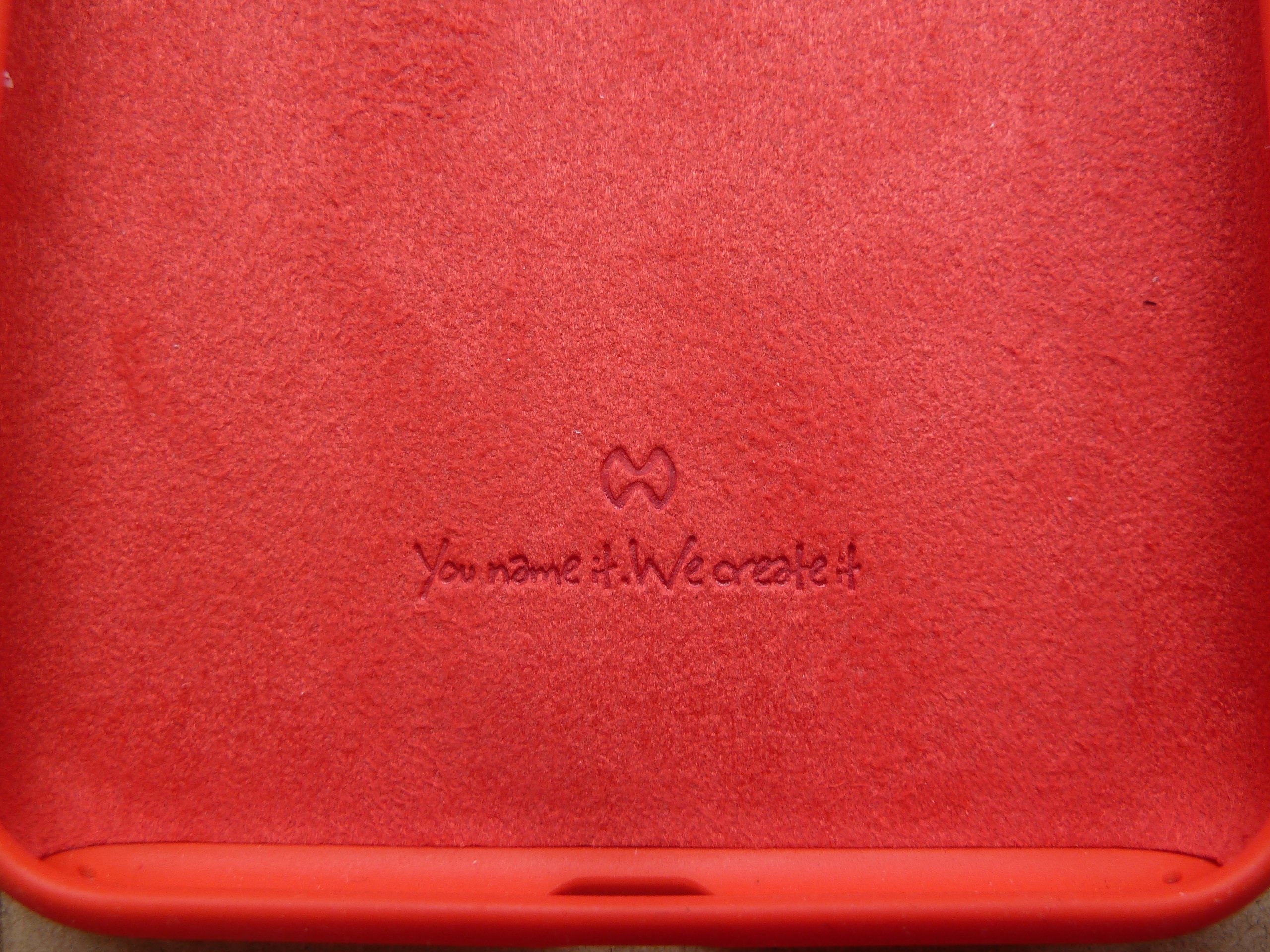 保护套底部有商标标志,还可以看到底部有绒面层,可以更好的保护和手机的贴合部位。