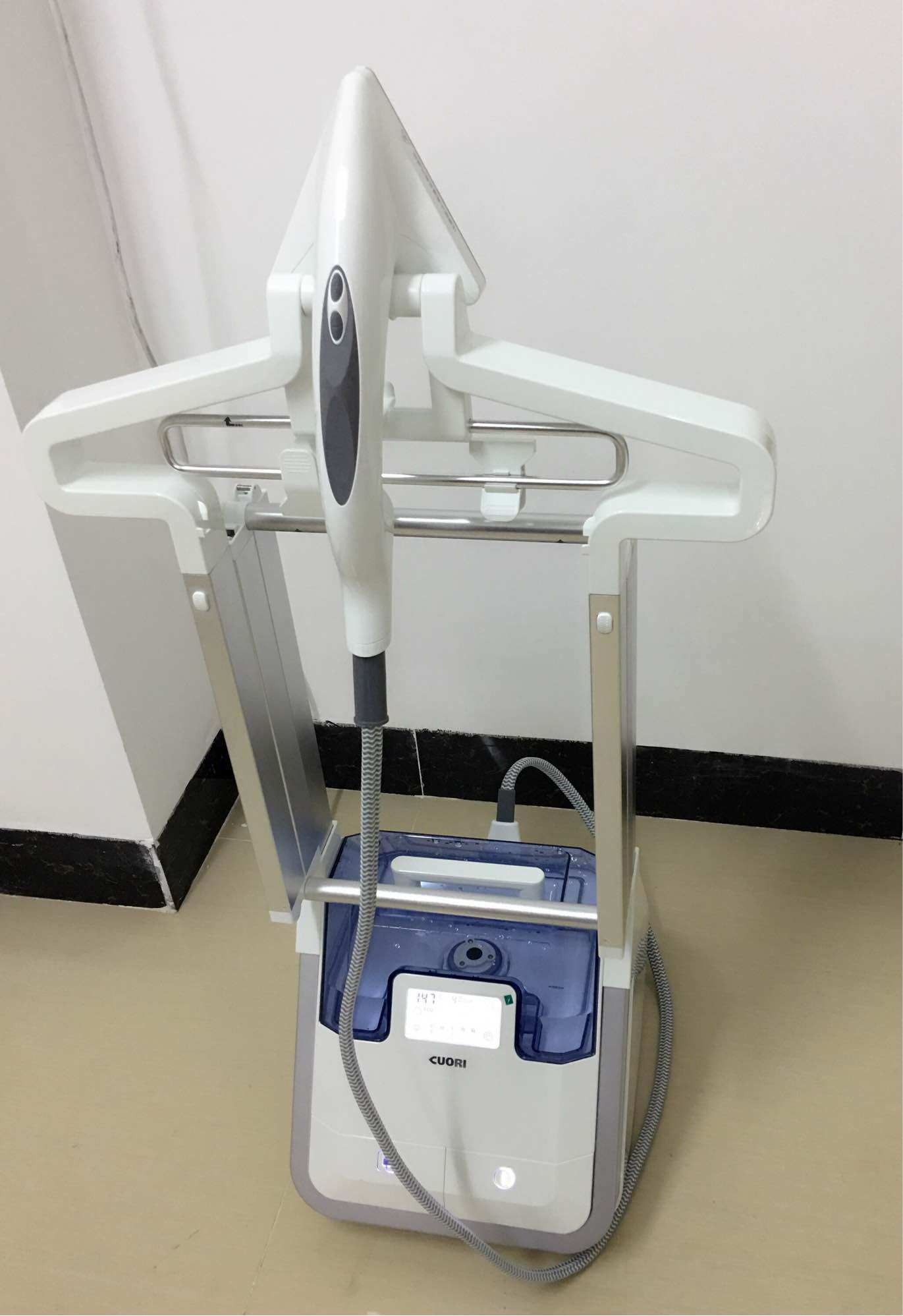 生活有时候真的会给你意想不到的惊喜……当我正在为一袋袋刚拆包皱巴巴的冬衣头疼不已的时候,居然让我抽中了挂烫机,而且是卓立智能挂烫机,要知道,卓立挂烫机在界内的地位可是相当于歌界的王菲呐……穿着皱巴巴的衣服上街真的是real real尴尬,姐终于要和这样的尴尬say goodbye了^ _^哈哈哈……请允许我先乐上三秒钟 ^_^收到宝贝的时候,真的是好大一包,相当的有份量。一层一层拆开,宝贝一点都没有磕碰的痕迹。三两下组装完成,蔚蓝色的水箱搭配白色的机体,真的好时尚,好有feel~~磨砂铝合金属杆体,无与伦比的细节质感,瞬间被宝贝的高颜值征服,爱上他简直毫无疑问......