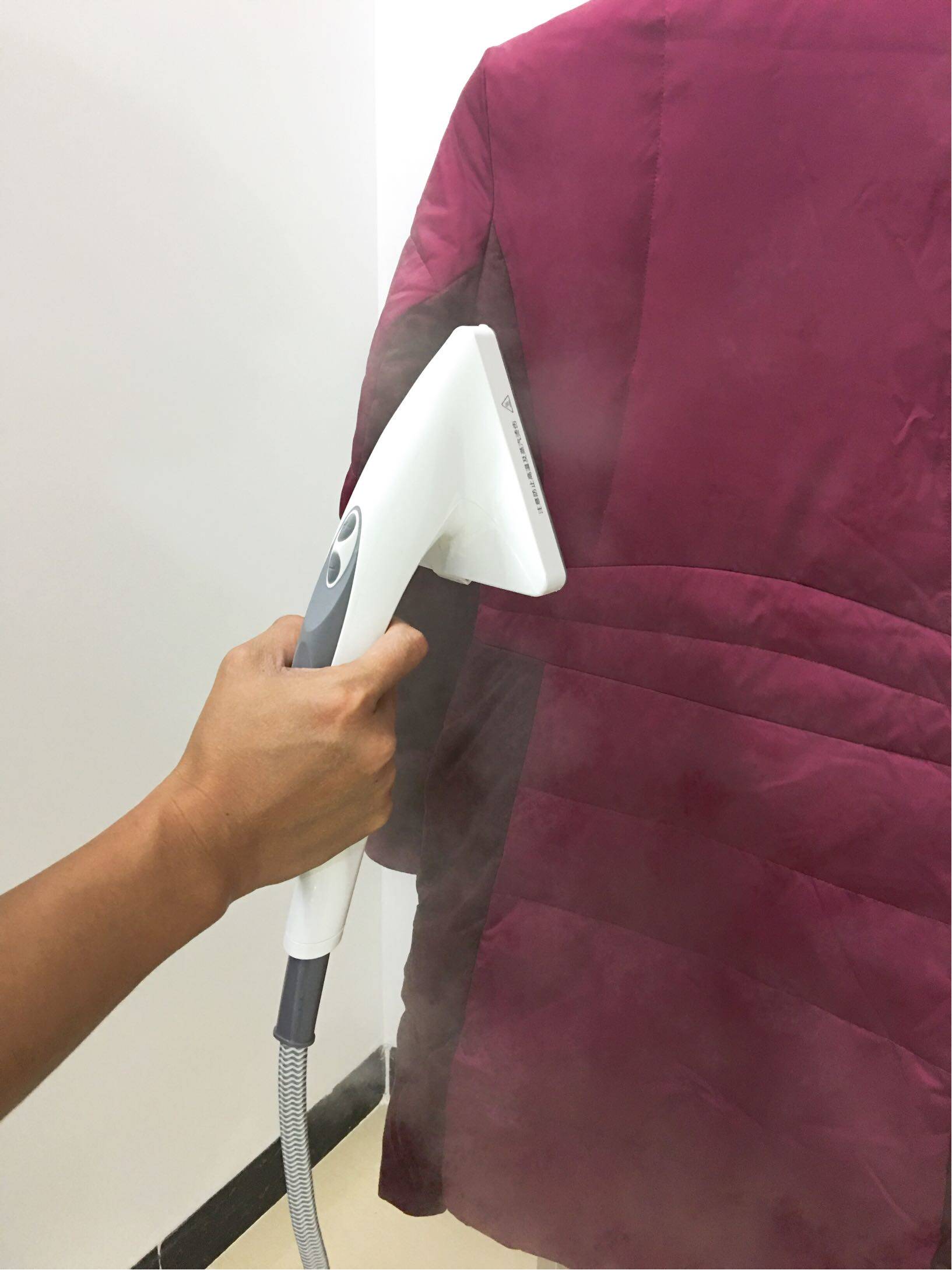 宝贝蒸汽喷力超强,如图,有木有腾云驾雾的赶脚……能够轻松快速的完成熨烫工作。虽然蒸汽很强,但熨过的衣物却不会潮湿,完全可以熨完就穿..... 而且我发现宝贝有一个特别实用的功能,就是能有效去除衣物上的异味。冬天的衣服不会长洗,可是天冷常吃火锅,伴着火锅店的烟味,酒味天,火锅味,弥留在衣服上的味道可谓缤纷,就算回家把衣服晾起来,那味道也是久久不能散去。现在,有了卓立智能挂烫机,它采用的九孔交叉射流,蒸汽向内聚焦,穿透力更强,对去除火锅 ,烟草等异味真的很有效
