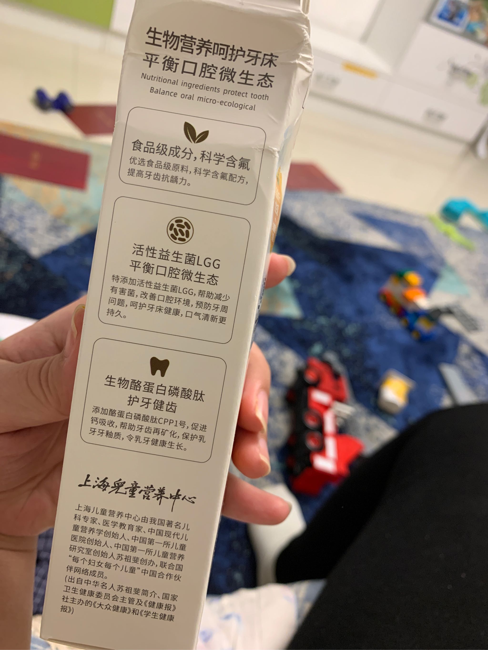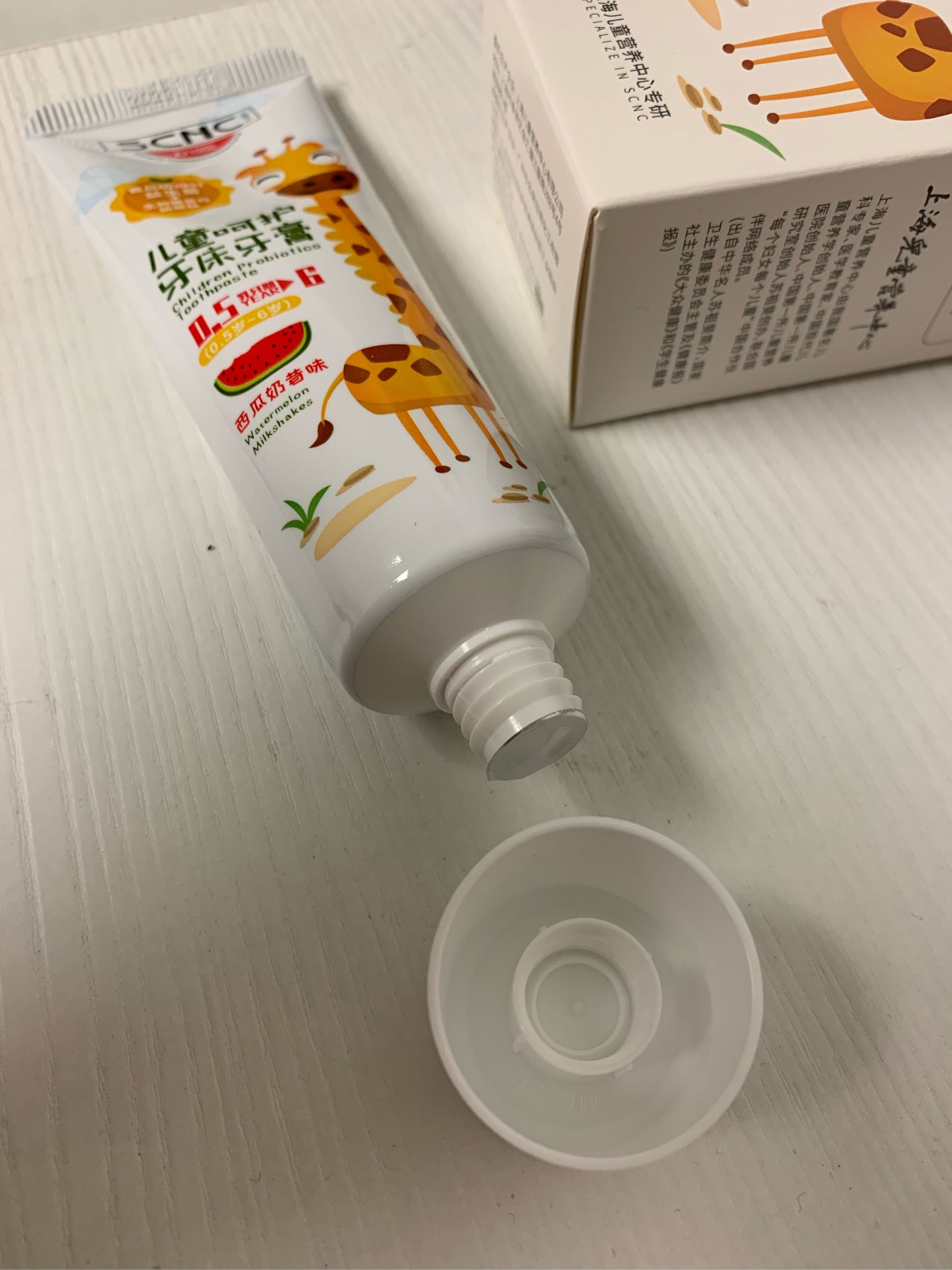 第一次写试用报告,有点小激动。选择这个牙膏的主要原因是因为相比世面上很多儿童牙膏,这款牙膏含氟。牙膏收到,外包装有点挤压,到里面的牙膏还是好的。看外观,做工还是很贴心,适合孩子。