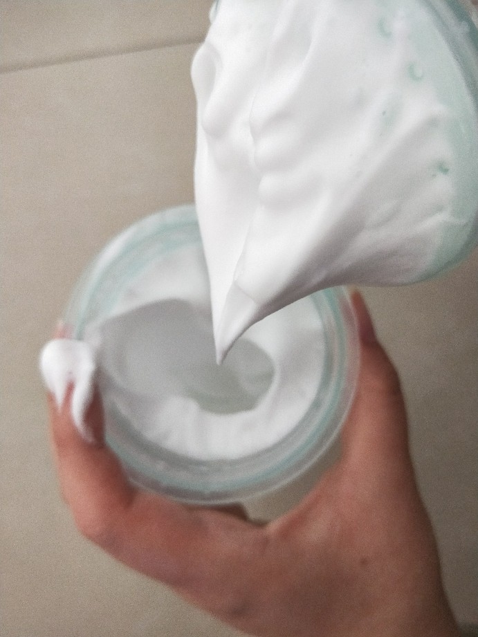 用打泡瓶打出来泡沫非常绵密,有弹性那种! 手工的话,反正我打不起来,打出来都是很稀很大的泡泡,总是失败!打泡好的话使用感挺好,不假滑,不伤肤。 清洁力很好,所以比较适合分区使用吧,使用后要注意补水! 对毛孔黑头的效果还看不出来