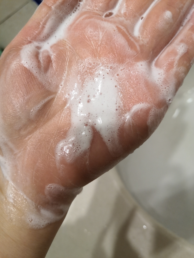 泡沫非常丰富细腻,有淡淡的清香味,温和不刺激皮肤