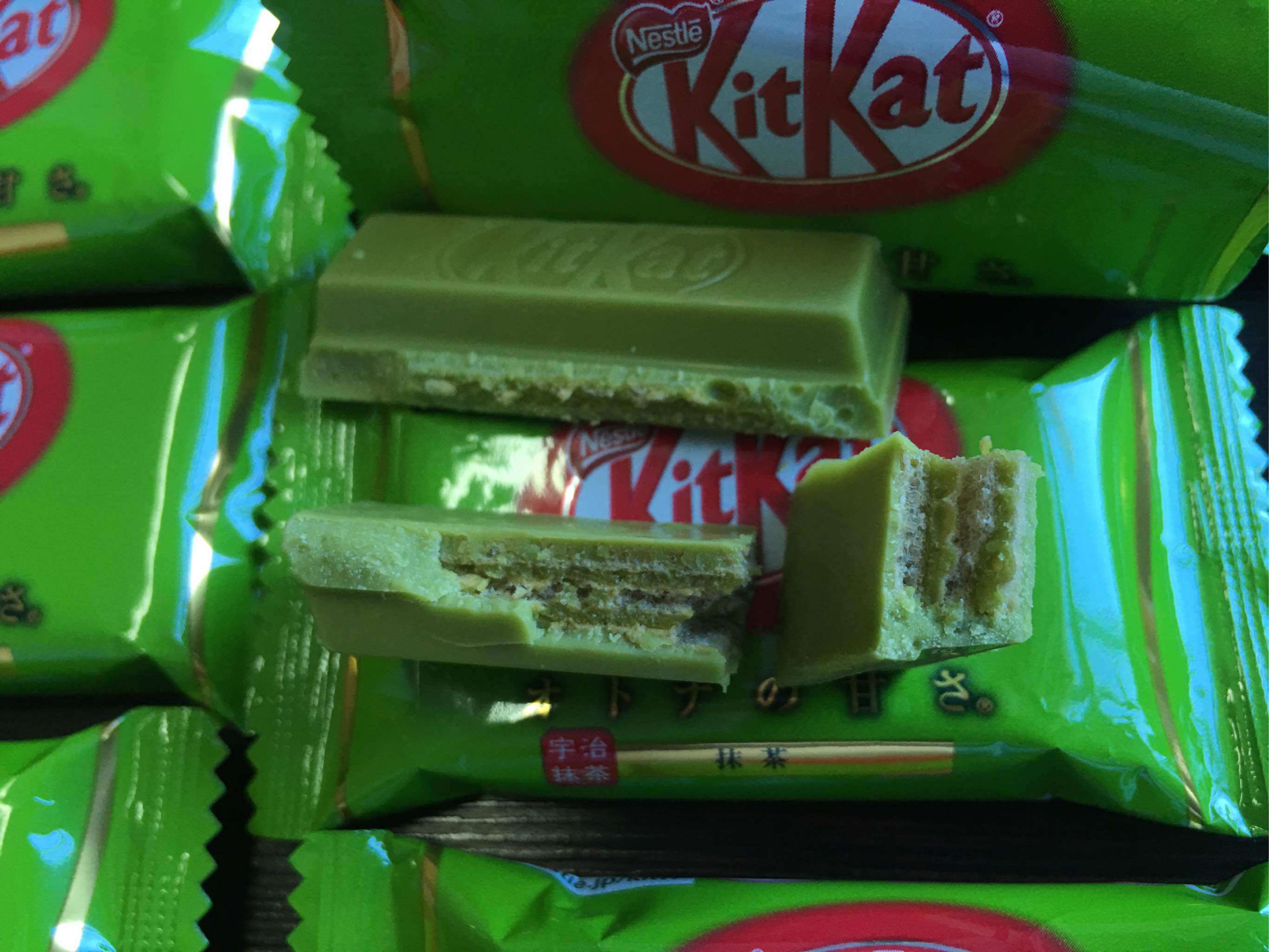 优点:产品包装设计与抹茶威化巧克力的特性相契合。每块都由厚厚的巧克力包裹着威化饼,初尝巧克力茶香微苦回味甘甜,威化饼脆脆的,与巧克力相得益彰。