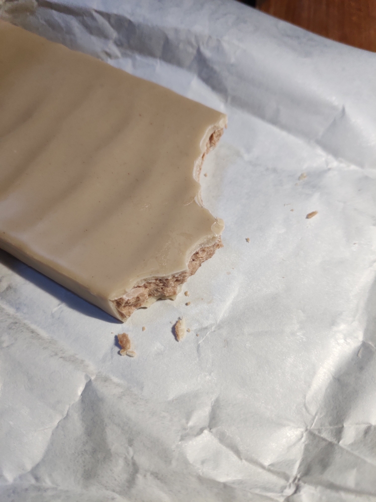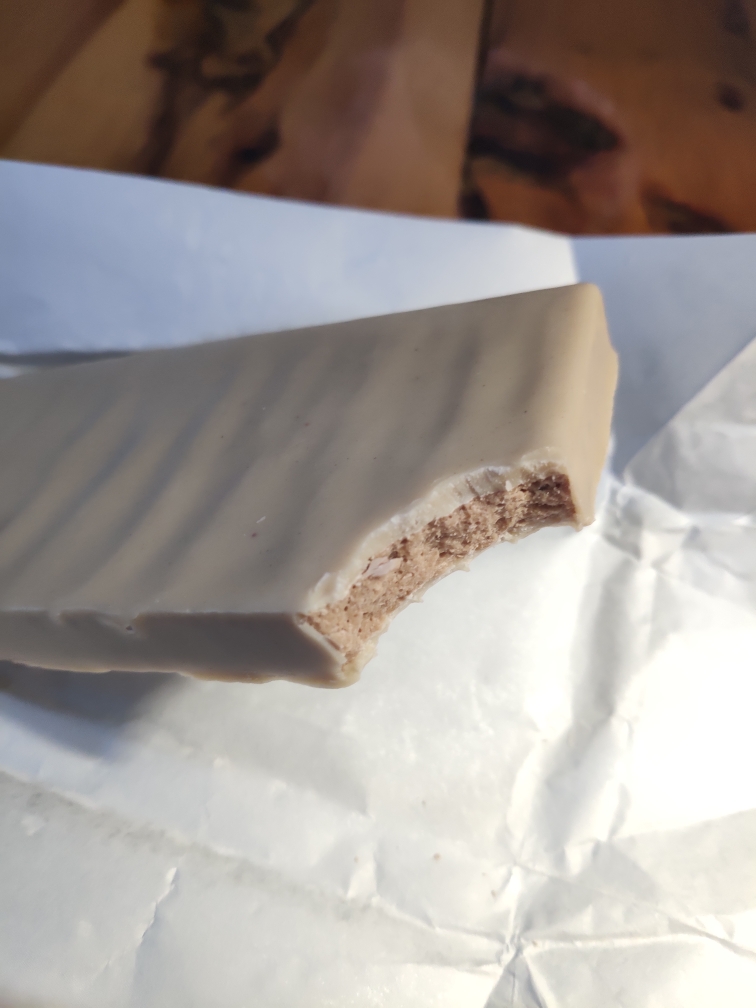因为是夜晚拍的,光线不足所以用小台灯补了光。可以看出外层是淡黄色的奶油巧克力。
