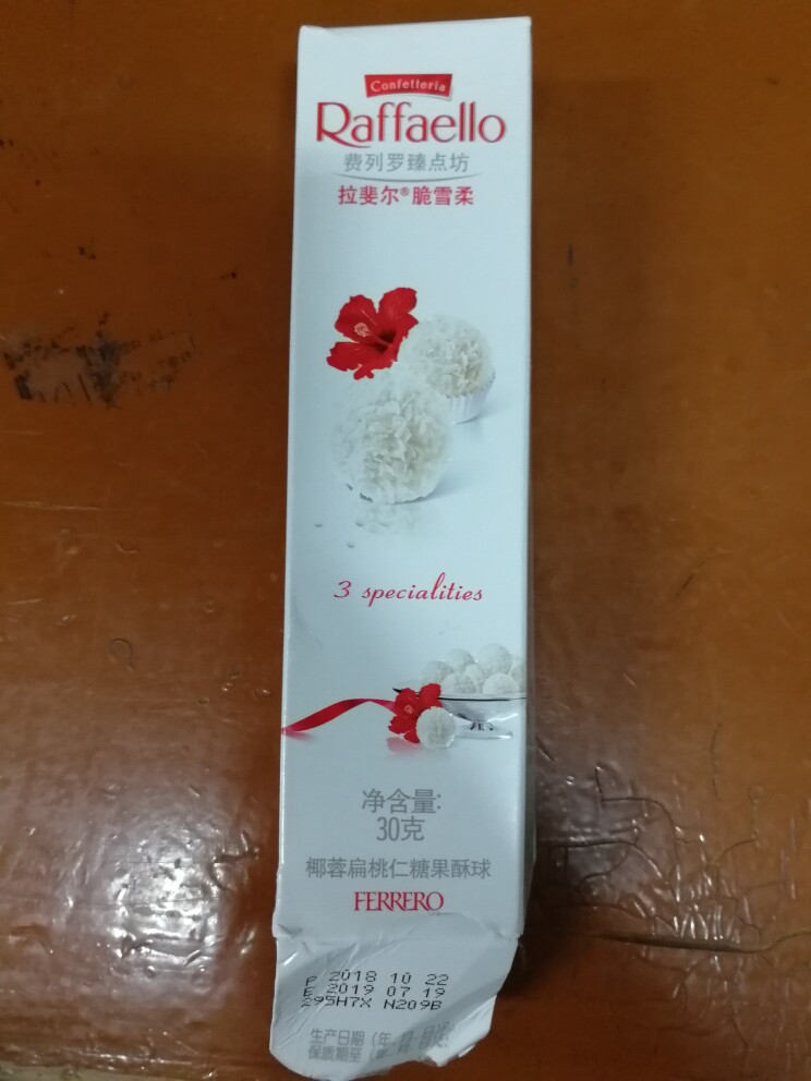 椰蓉白巧克力费列罗比起普通黑巧克力款更甜 但是搭配了椰蓉 口感就比较丰富 更细腻一些 包装比较简单直观 日期到今年七月 需要尽快食用 不宜囤货