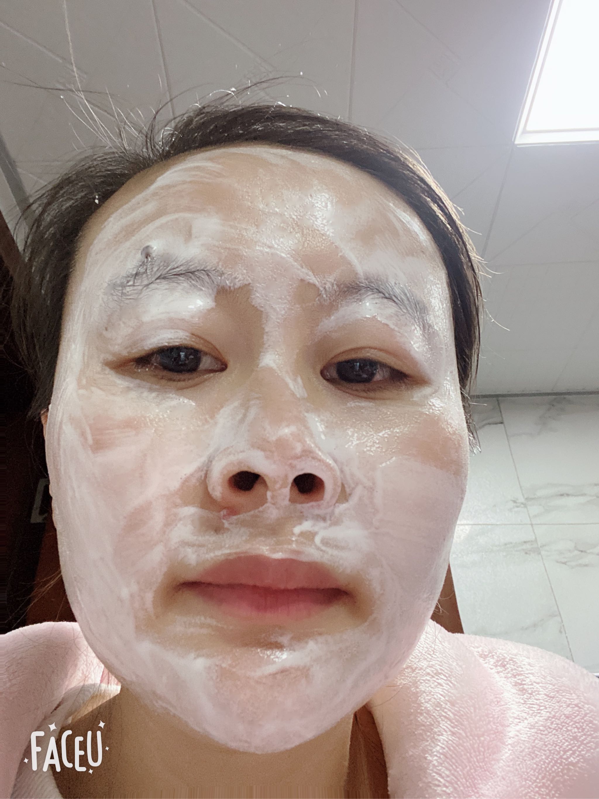 刚开始以为是面膜,后来仔细看才知道是洗面奶,使用心得:1,很细腻;2,泡泡很多;3,温和不刺激;4,效果很好洗的干净(现在是特殊时期每天在家煮饭,脸上有点油,家里几款都不好用);5,洗后脸不干,很舒服。