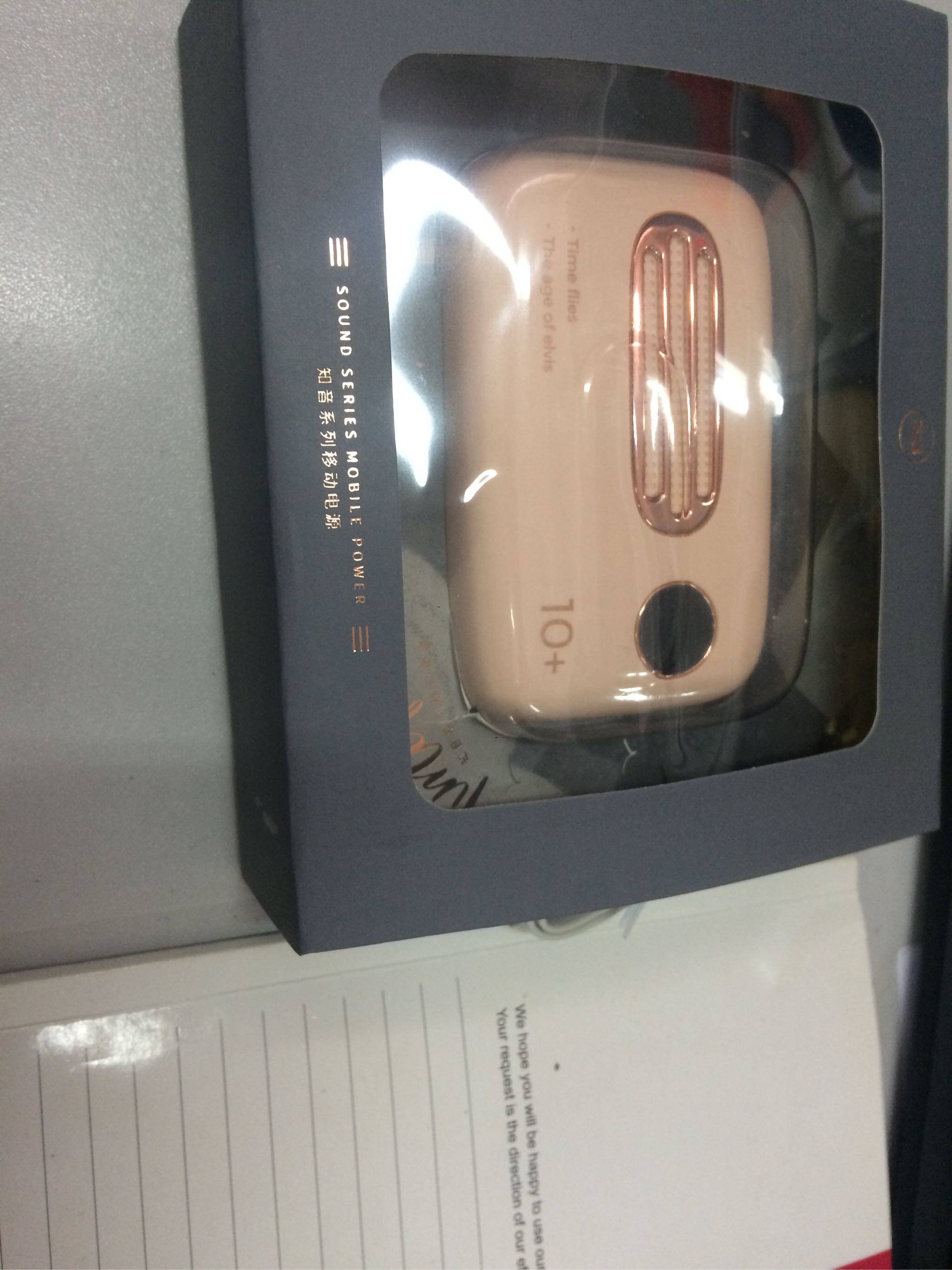 颜值很高,包装也超级好看,送人都非常合适。上面有显示电量的地方,收到时候有70多,充了次手机才下去一点点,非常满意,不大,有点重量。两个充电口,还没有充过电。这颜值满意的不得了。感觉其他颜色也会很好看,像奶茶色。