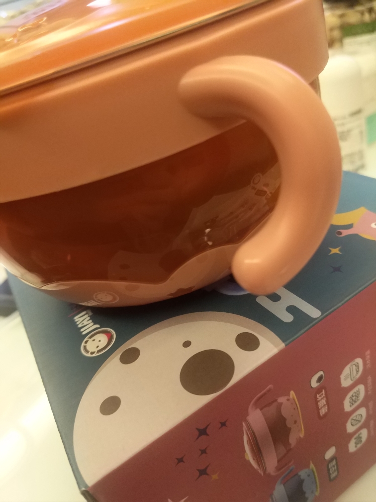 好看很惊喜,粉色的好看,又把手方便拿,可以加水,小巧宝宝装辅食足够了,配送了勺子叉子很方便,里面全部不锈钢的