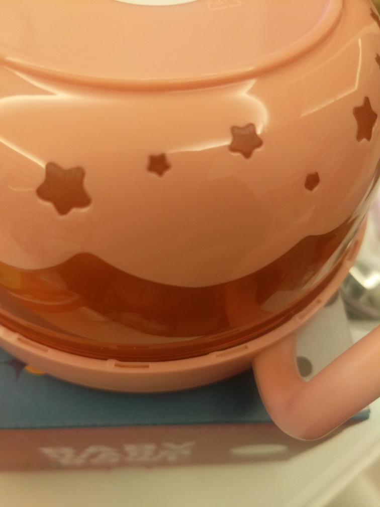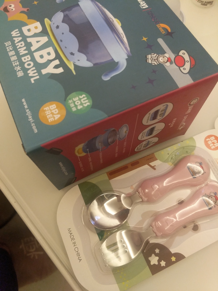 快递很快收到了,很惊喜,粉色的好看,可以加水,小巧宝宝装辅食足够了,配送了勺子叉子很。底座星星很美