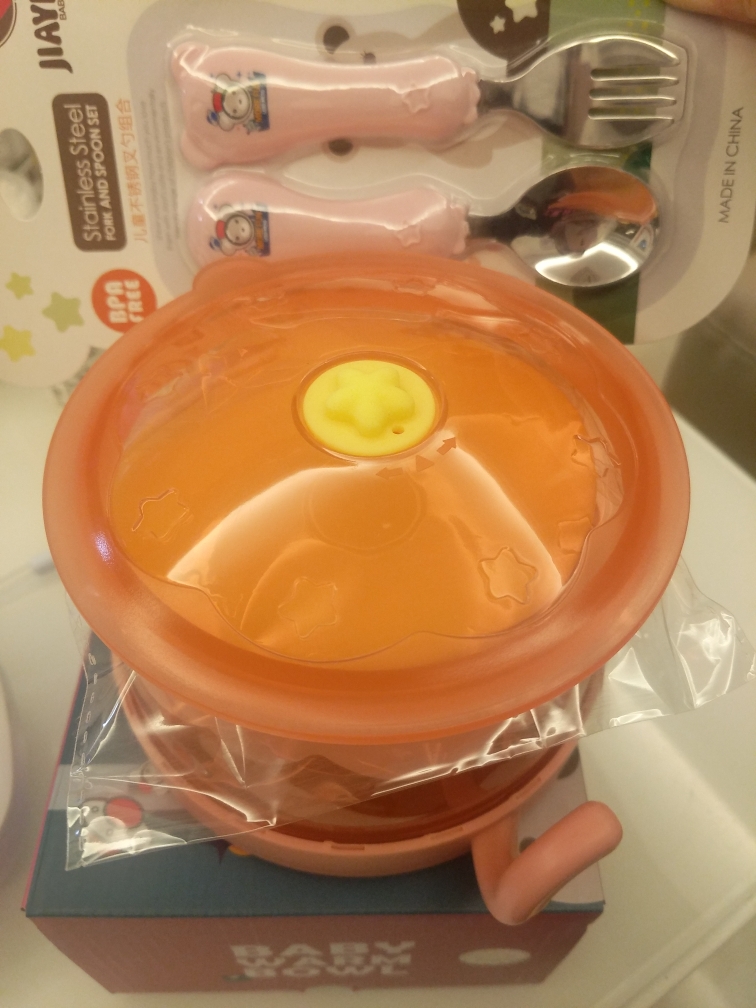 吸盘可以聂在桌子好看很惊喜,粉色的好看,又把手方便拿,可以加水,小巧宝宝装辅食足够了,配送了勺子叉子很方便,里面全部不锈钢的,实用。可以给宝宝用起来了。