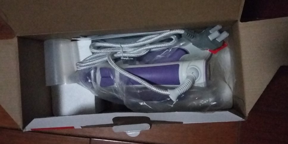 很高兴申请试用成功,宝贝很快就收到了,第一感觉盒子有些长。打开先看到一条小方巾,取出熨斗一看,蛮漂亮的。颜色很喜欢。