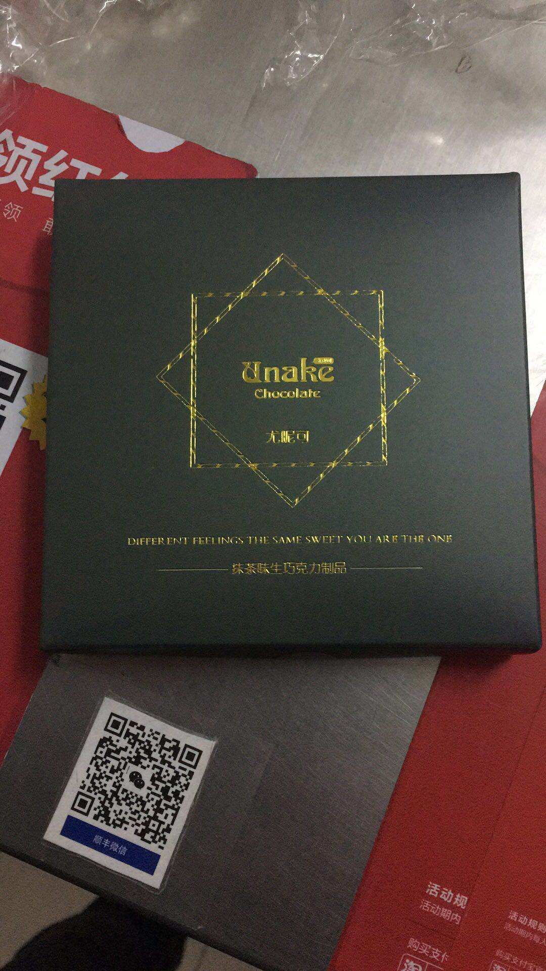 今天刚收到货,选择了抹茶味的生巧克力,第一次吃生巧克力 真是爱吃巧克力型人的福利,应该是加了很多淡奶油吧,入口即化的感觉太开心了 小小的一块,应该就是一块瑞特斯波德的大小吧,不太够吃~ 老板服务态度特别好,热心的接待,发的是顺丰快递,虽然收到的时候快递外包装破损的不成样子,里面的巧克力还是完好的 生巧克力的保质期都很短,要在最新鲜的时候第一时间享用完毕