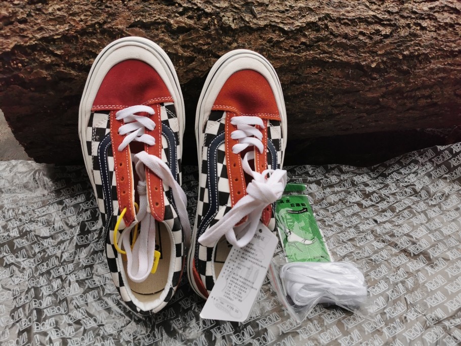 发货速度很快,鞋子收到那一刻很惊喜,卖家还贴心的送了后跟贴和备用鞋带,脏脏橘和格子帆布的设计,时尚潮流,男女同款,情侣鞋不错的选择!