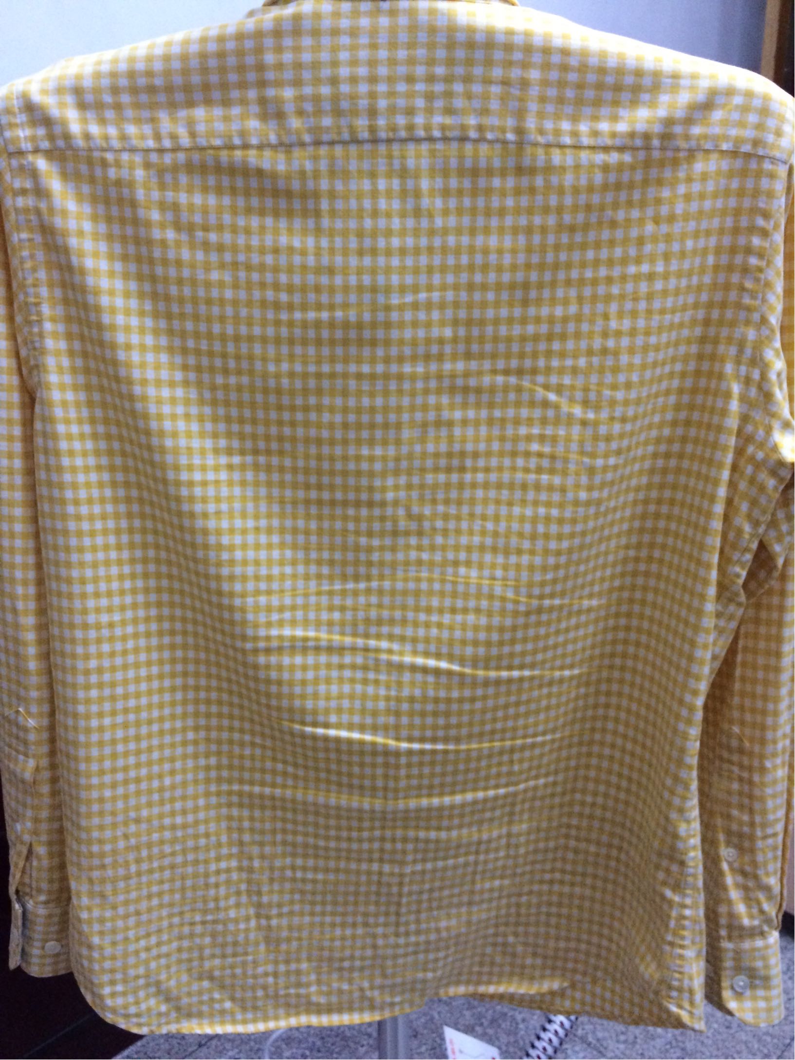拿了一件褶皱比较多的衬衣做实验。背面