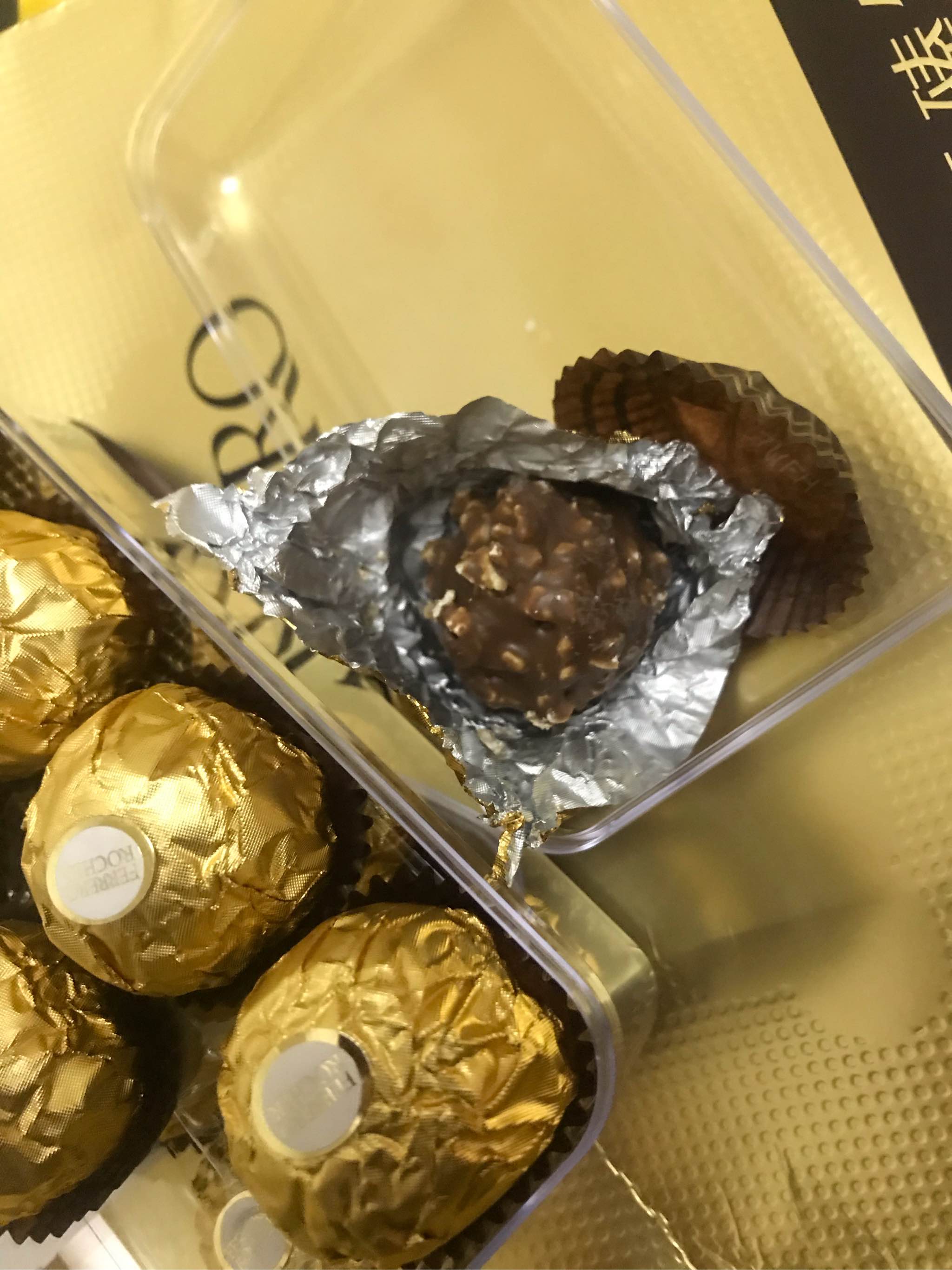 优点:好看,包装特别用心,每个球上的小标签特别精致,打上费列罗的标签只有专属费列罗的巧克力才能做到!巧克力球内容非常实在,咬一口,有脆脆的巧克力碎,有坚果的实在感,有巧克力酱的顺滑感,甜而不腻,绝对是巧克力里的精品!