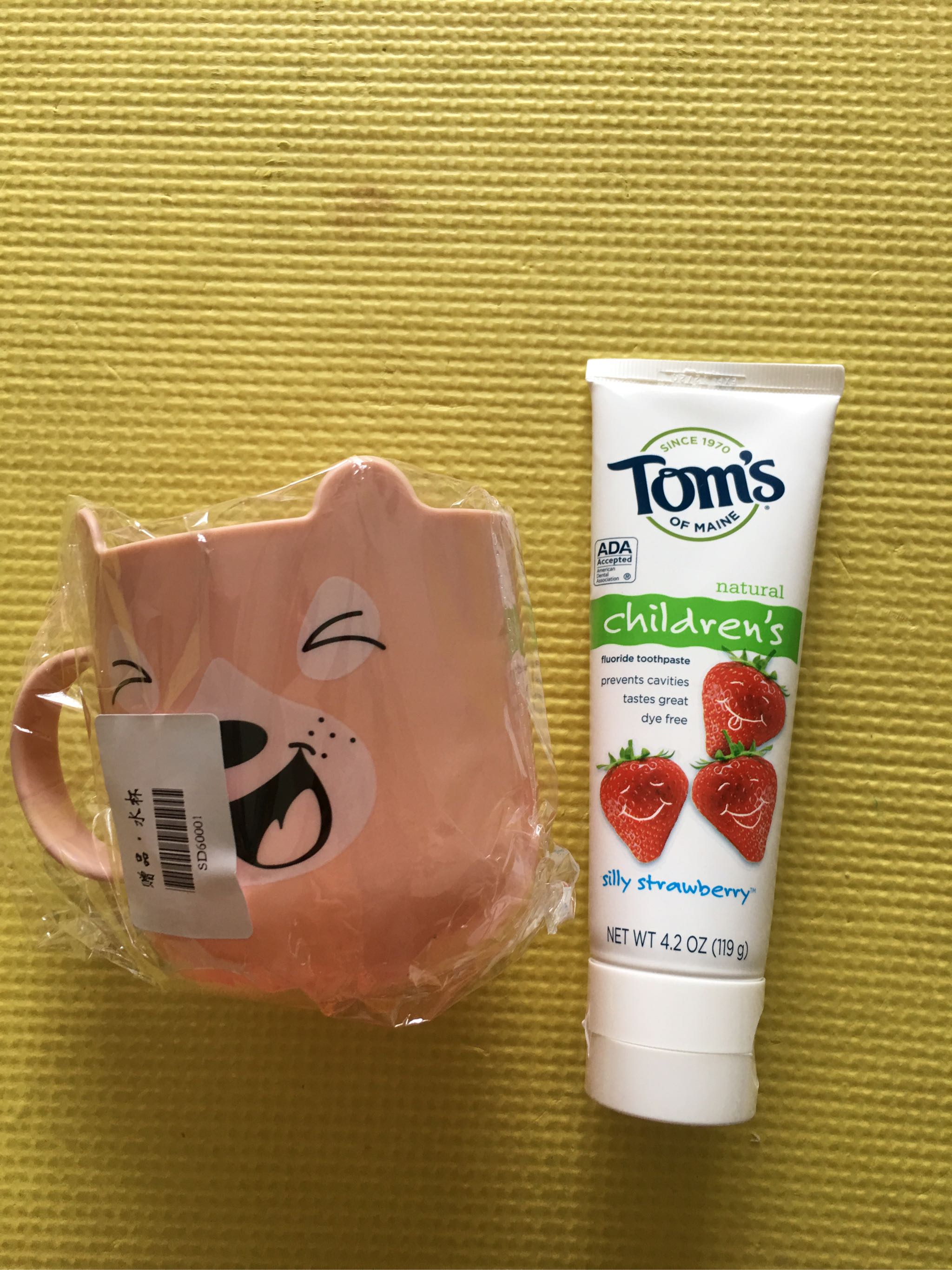 牙膏是草莓味的,小朋友最喜欢的味道,刷牙的时候很开心。