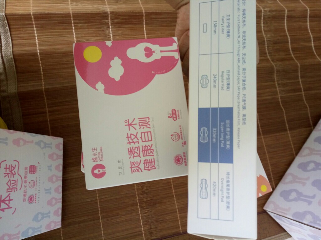 包装完好无损,满满一盒子,太惊喜了。日用,夜用,护垫,应有尽有。