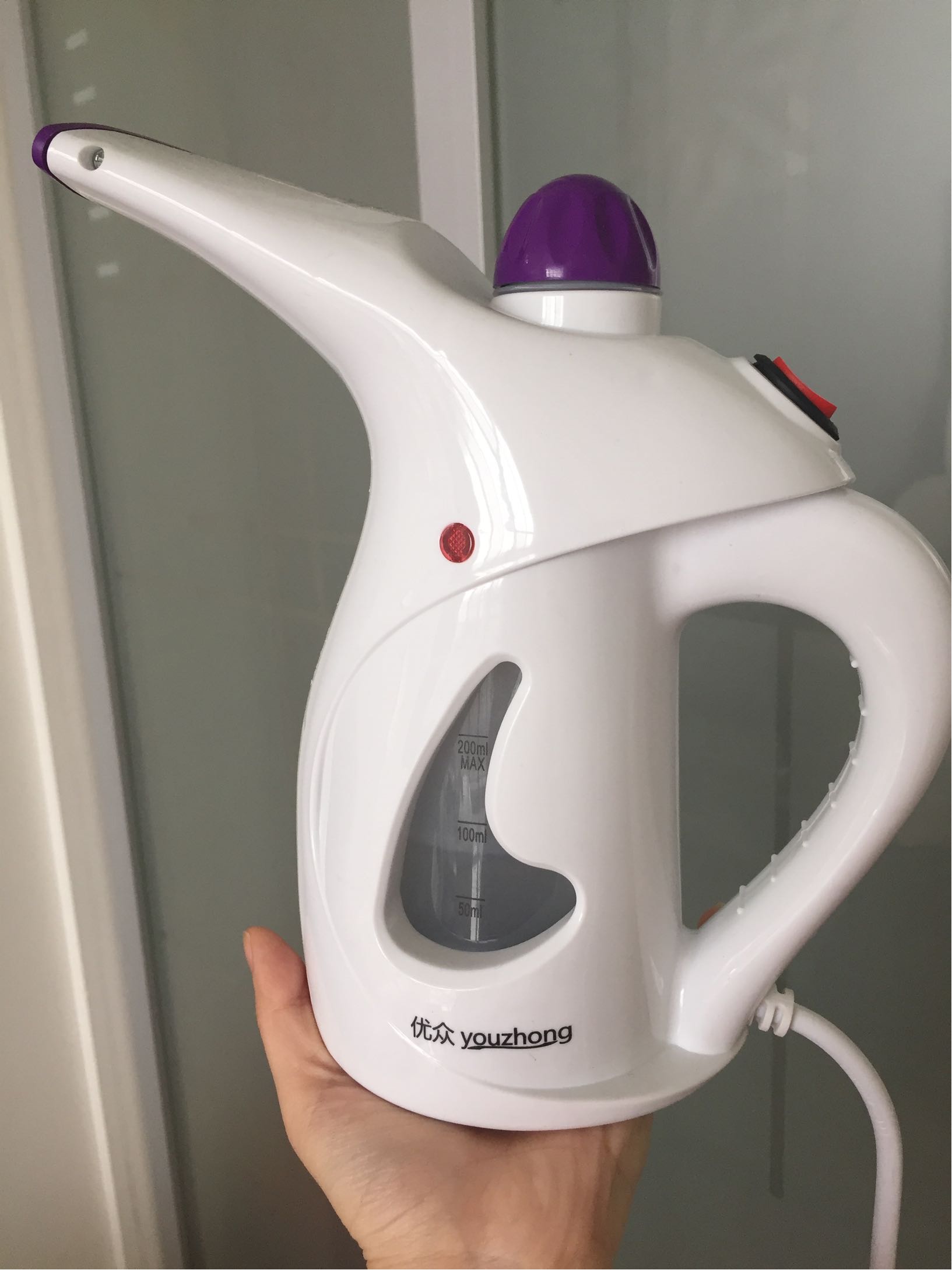 优点:总体来说比较轻巧,可以熨衣,蒸脸两不误,同时又不像大的挂烫机那么的占地方,放柜子里就可以。