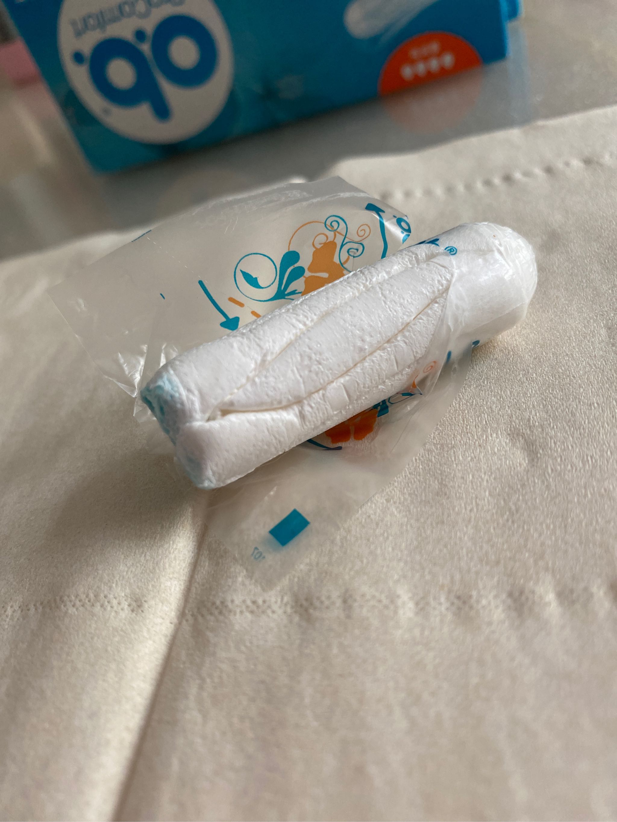 第一次买棉条,小小一盒,比卫生巾体积小很多,送了指套,比较卫生。