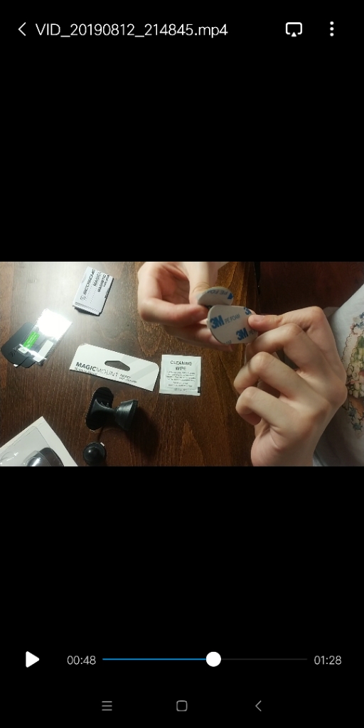 很荣幸也很幸运申请试用成功!店家的快递速度一流,很快就收到这份试用,而且配送还提前短信提示。 说到宝贝,我认为它很实用。里面的零部件特别多,可以有高位、地位两种模式放置手机。说明书是全英文的,里面的配图简单易懂。 我的这份宝贝是通过粘贴的方式固定使用,所以里面那个酒精棉片就很实用了!两个旋转头可以各种角度地扭,使用方便。 本身拍了视频,但不知道怎么上传,所以截了图作为说明!