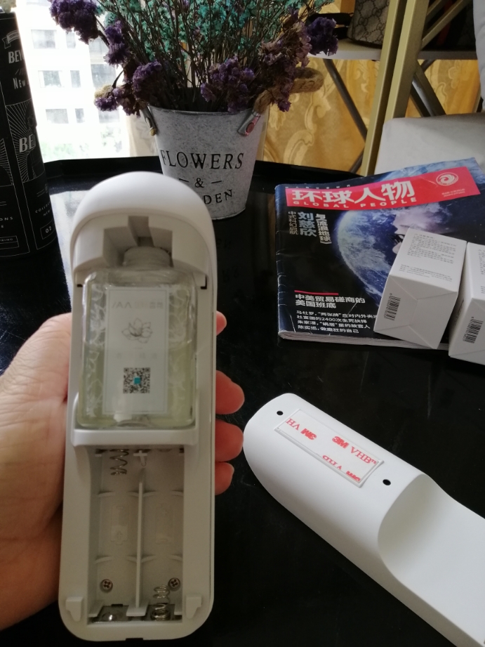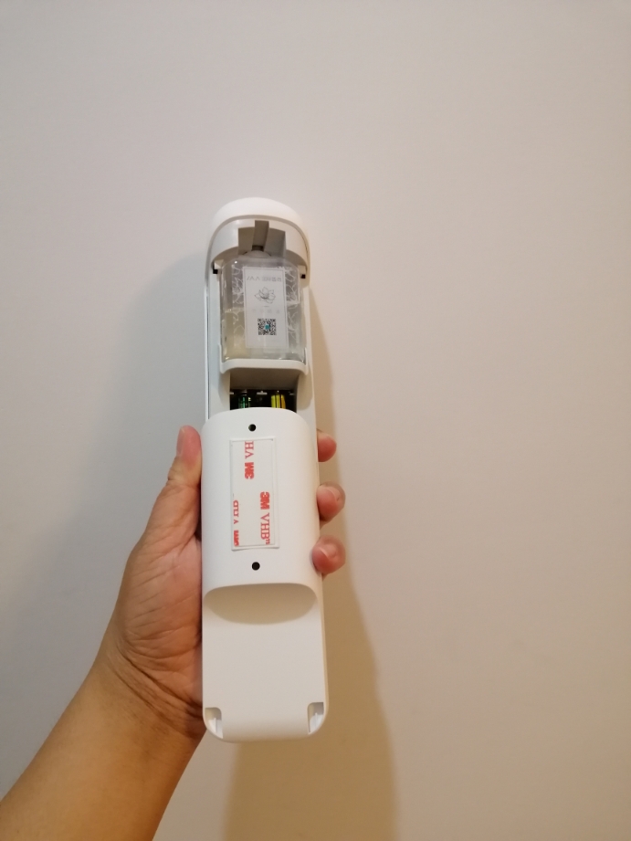 香氛精油安装方便,直接去掉盖子照着小白孔位一步到位。背面看感觉构造挺简单的,上面是储藏室下边是电池盒。