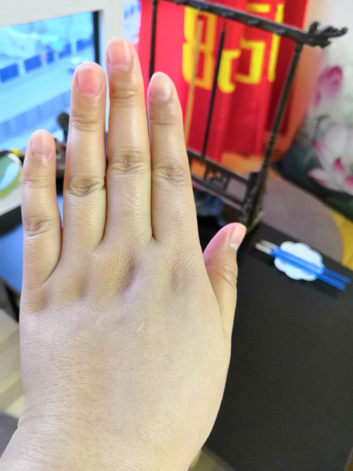 刚开始涂抹有一点假白,轻拍几秒至完全吸收后,感觉整体很滋润,白的很自然。