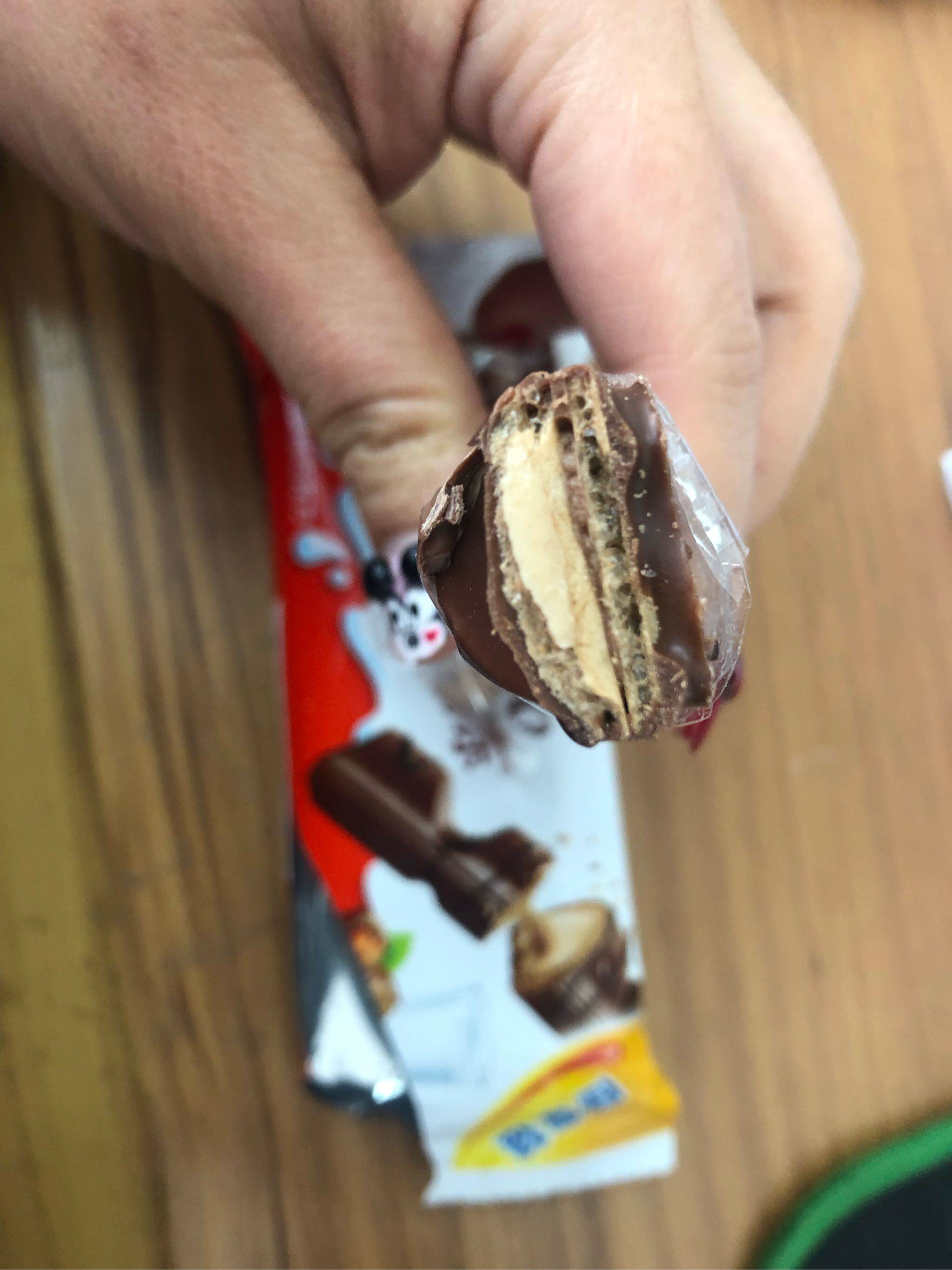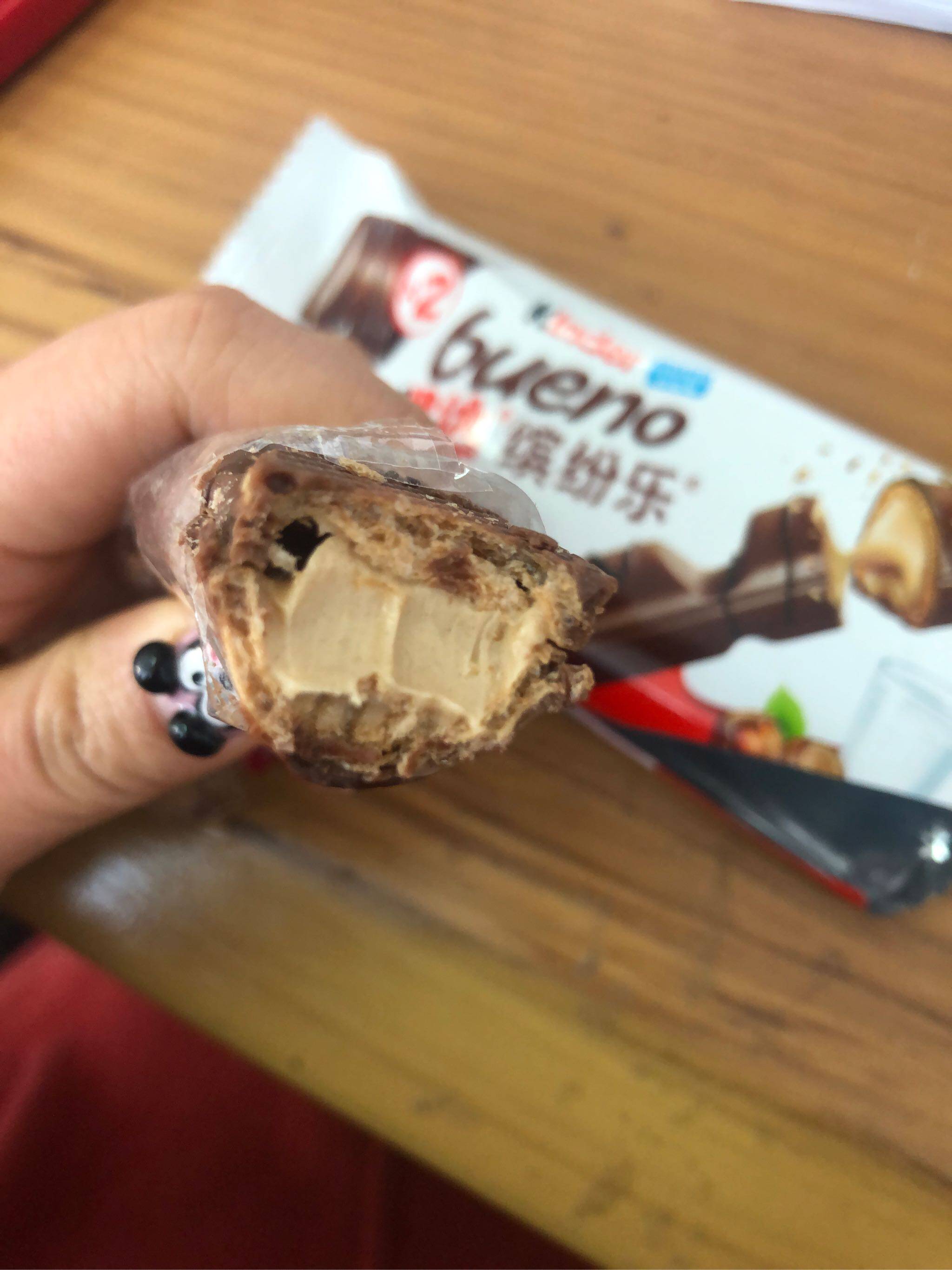 内里的榛果夹心真的很顺滑去,口感好,巧克力包威化,威化里有榛果酱!口感上酥脆香甜顺滑很有层次感