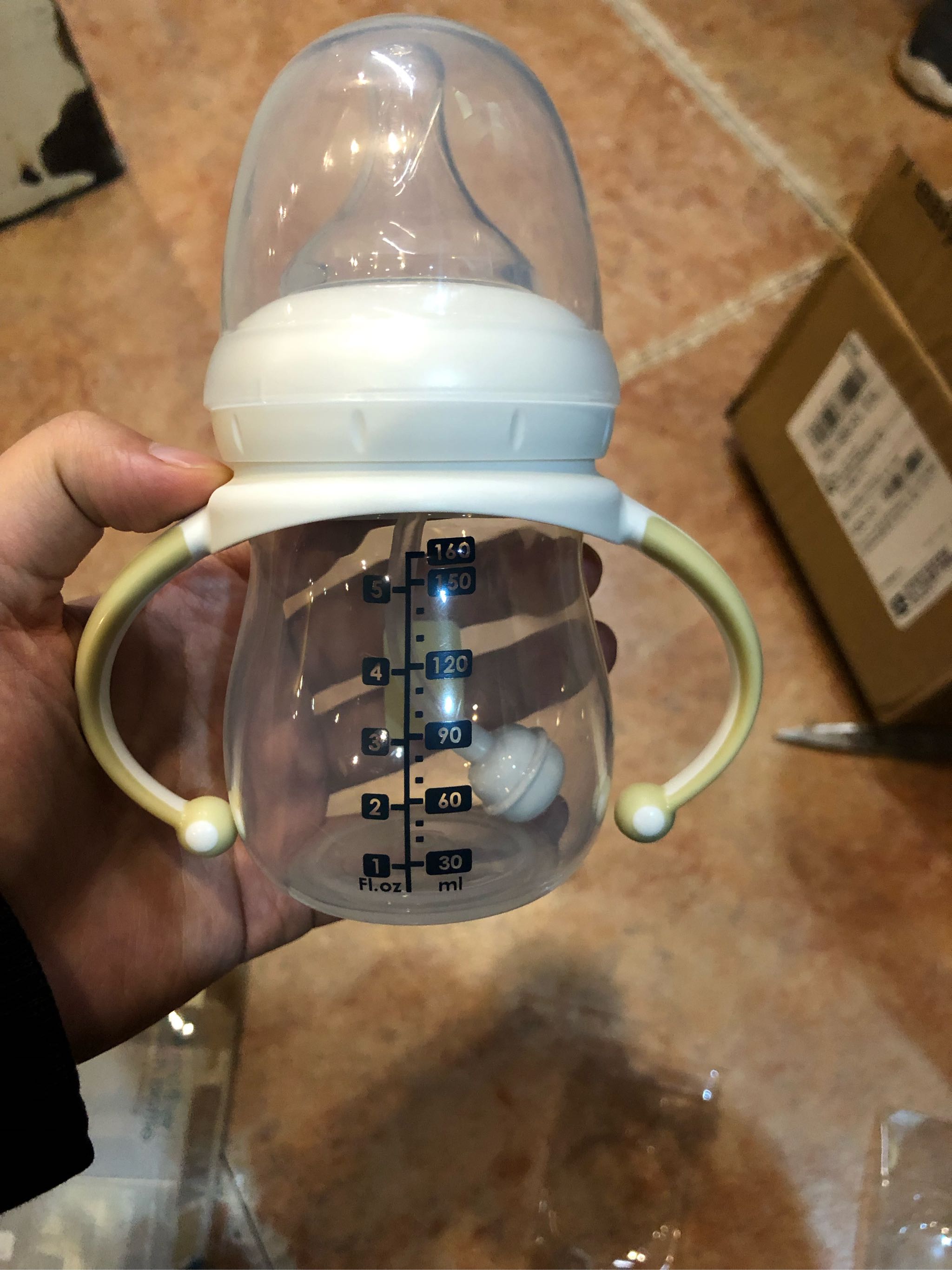 优点:说明书清楚想象的介绍,奶瓶外形可爱,还有两个抓手,毫升标注清楚!