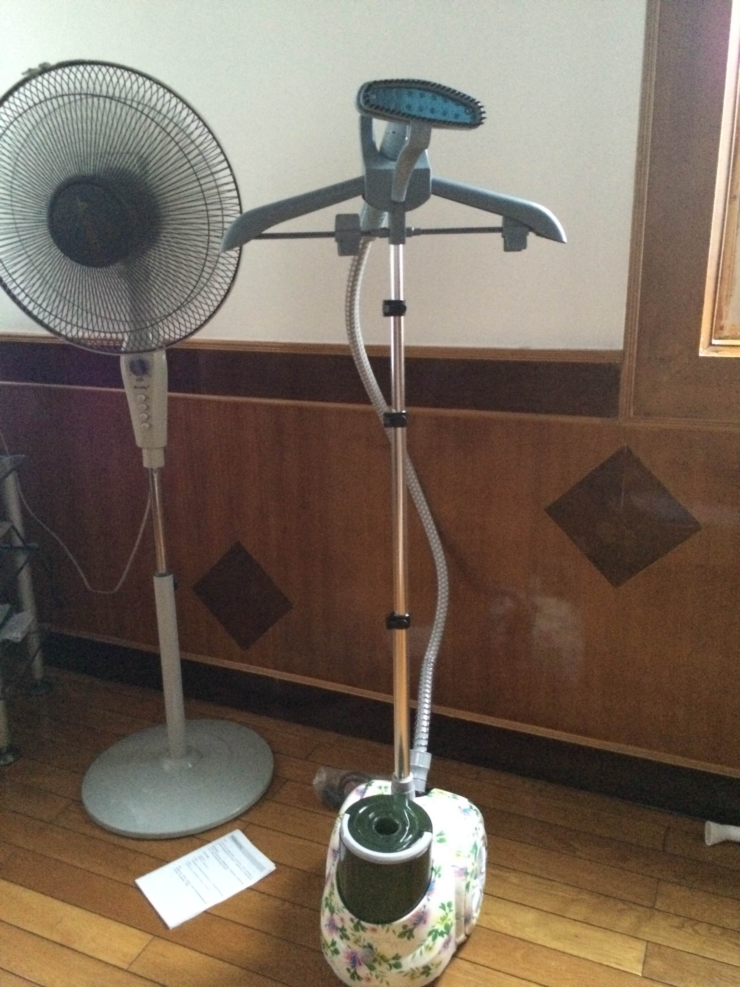 一直心心念念有个挂烫机能把家里的衣服都好好的熨烫下,可以美美的出门。没想到收到个这么高档的挂烫机,太开心了。ps.第一次做试用报告,写的不好大家见谅啦。 只能放两张图片,包装什么的就不上图了。直接来个完工后的成品图,装搭很简单几分钟就搞定了。再来一张跟电扇的对比图,就是这个大小