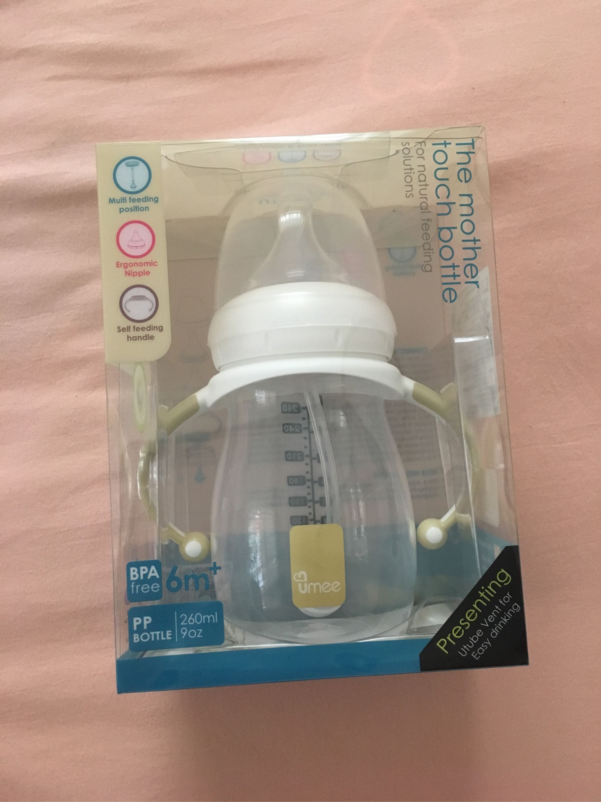 优点:材料安全,设计人性化,防胀气设计让宝妈更放心,奶嘴柔软宝宝不抗拒,宽口径易放奶粉易清洗。