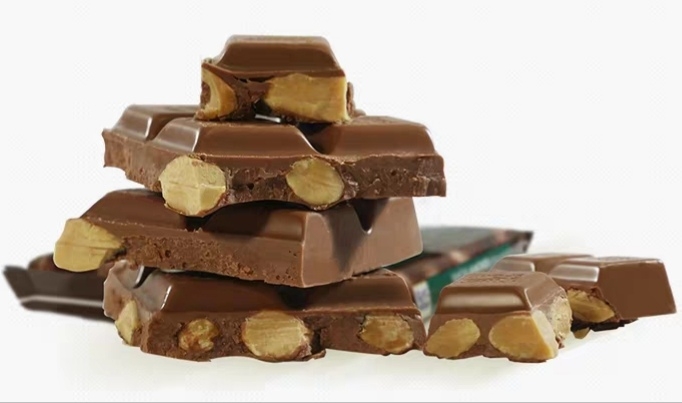 里面全是整颗的桃仁,很好地中和了牛奶巧克力的甜腻。