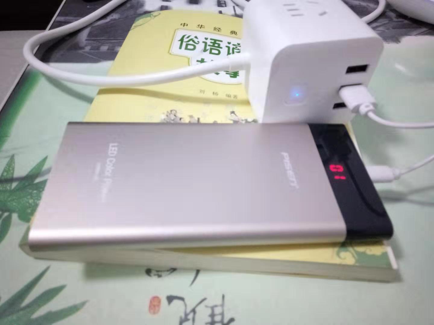 用充电器对冲电宝进行充电中,实时显示电量,记得使用电流大的充电器,从而保证快速完成充电任务。如果使用电流小的充电器,冲电时间会很长,推荐在夜里进行充电。