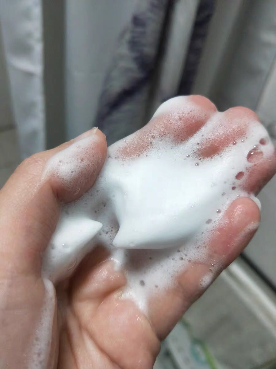 用打泡器打出来的泡沫还是比较绵密的。我这半年多一直用的孕妇专用洗面奶,比较温和,打出的泡沫相对来说倒比这个粗。