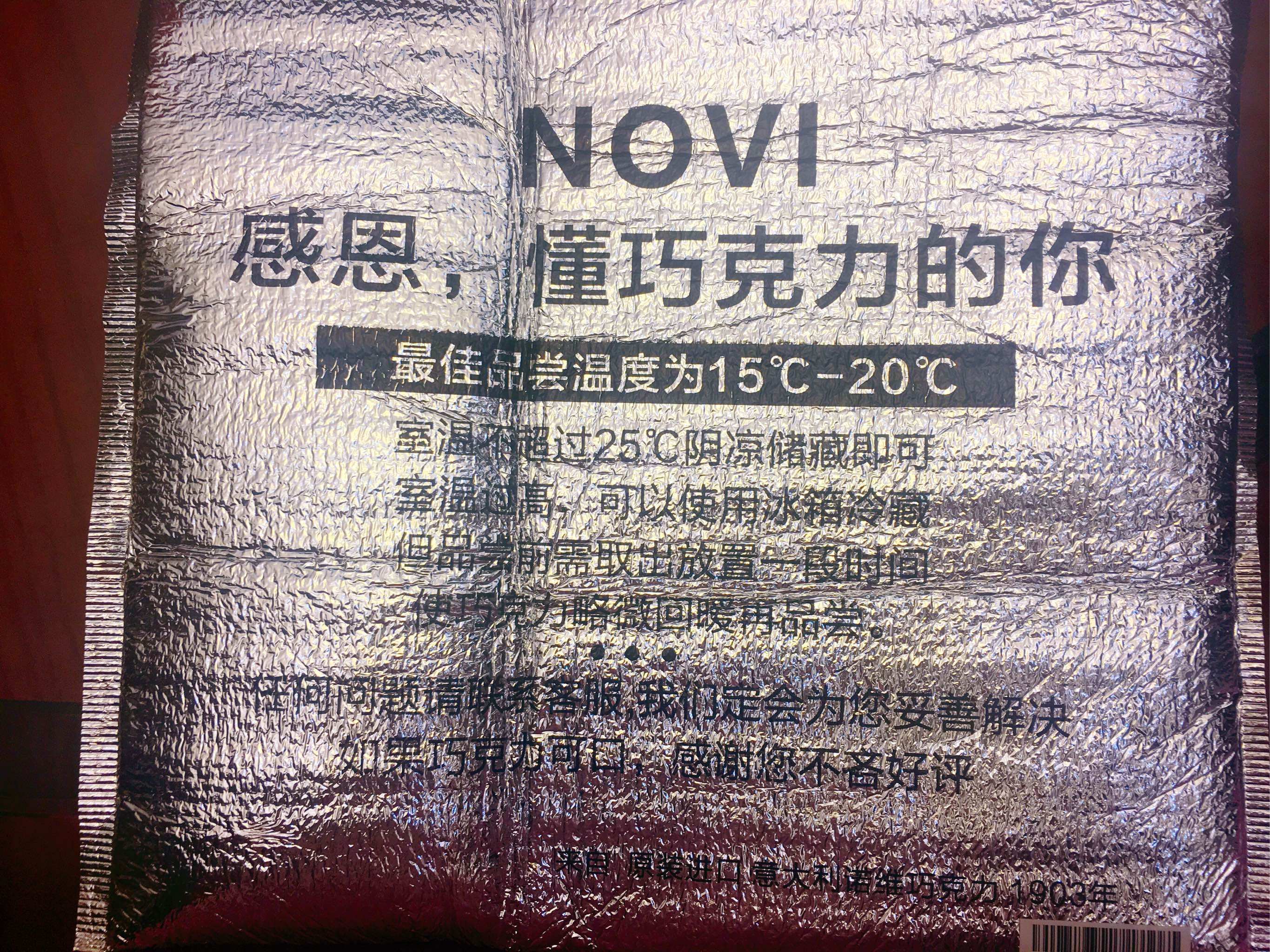 剥开巧克力表面的包装膜,终于见到Novi巧克力本尊啦!每一格巧克力上均有品牌标识。