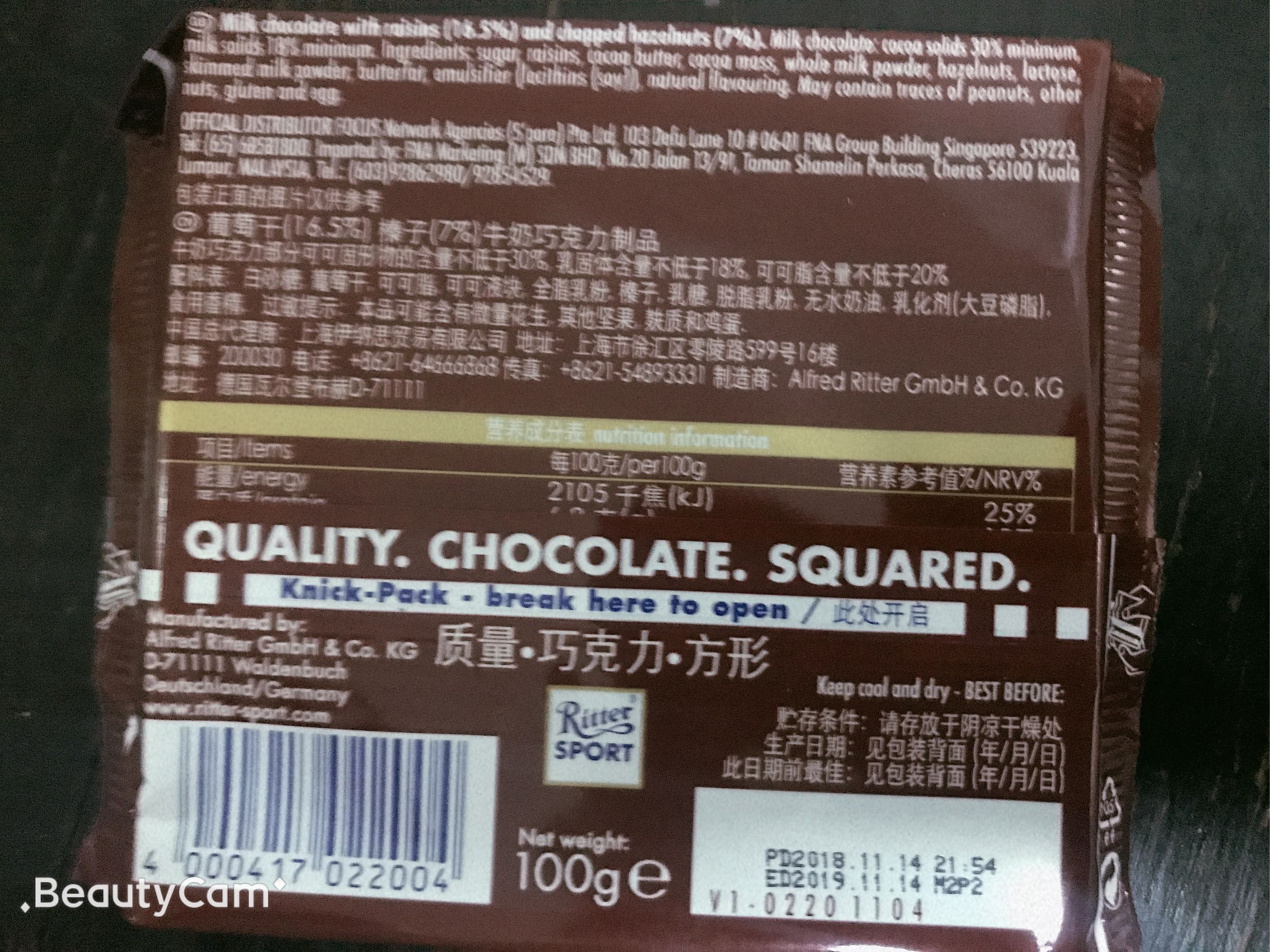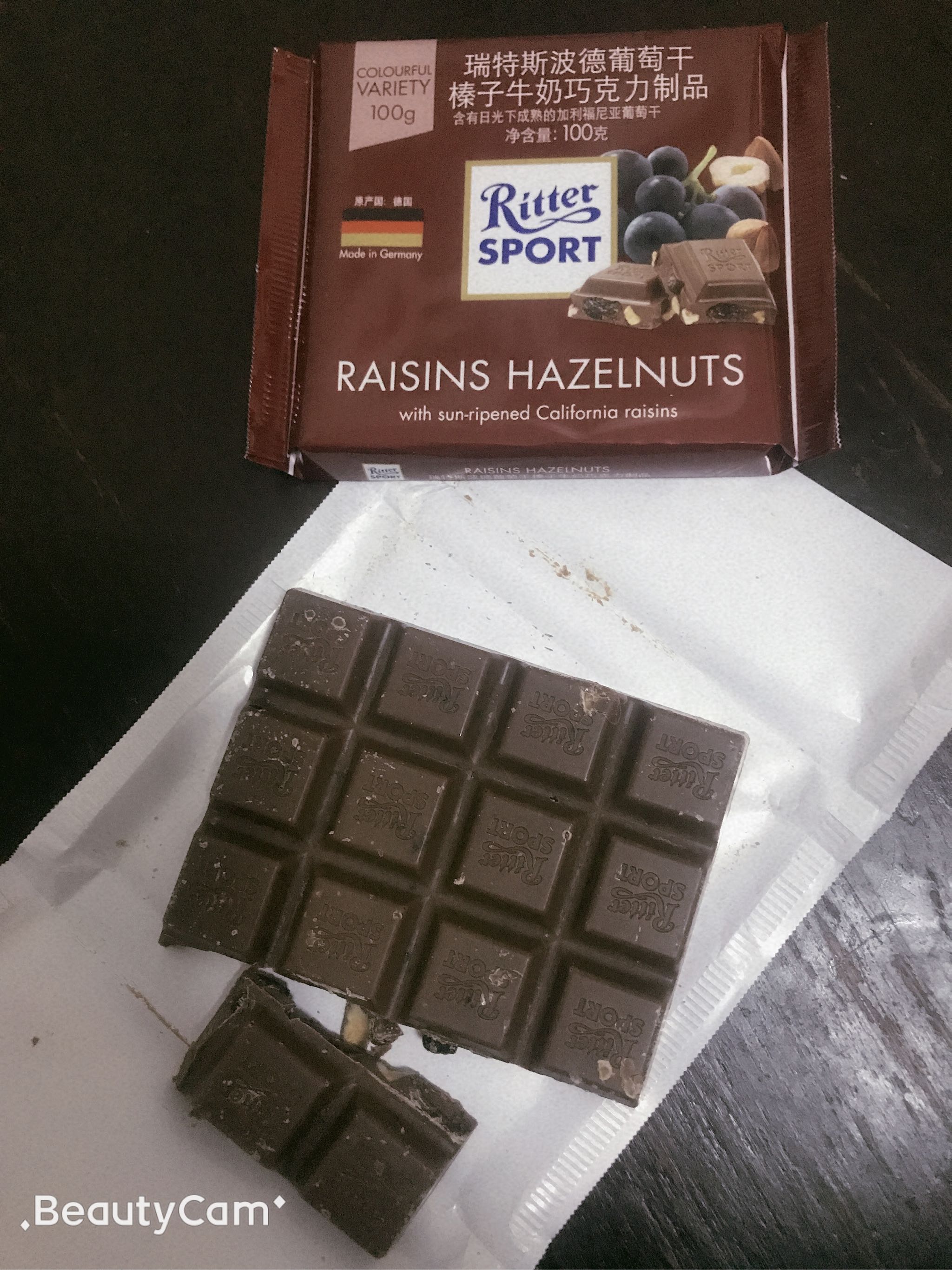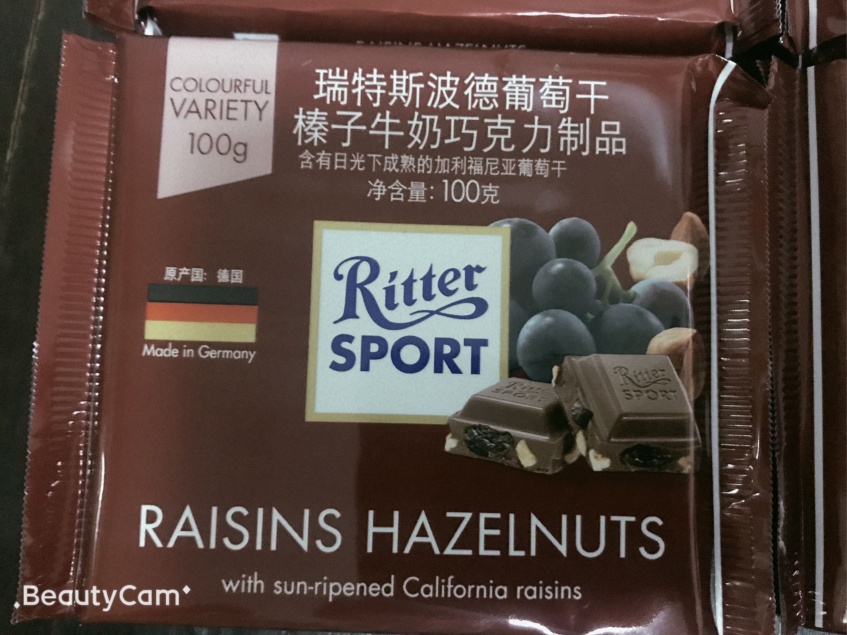 瑞特斯波德葡萄干榛子牛奶巧克力!德国的噢!光看这名字就忍不住想吃上一块!