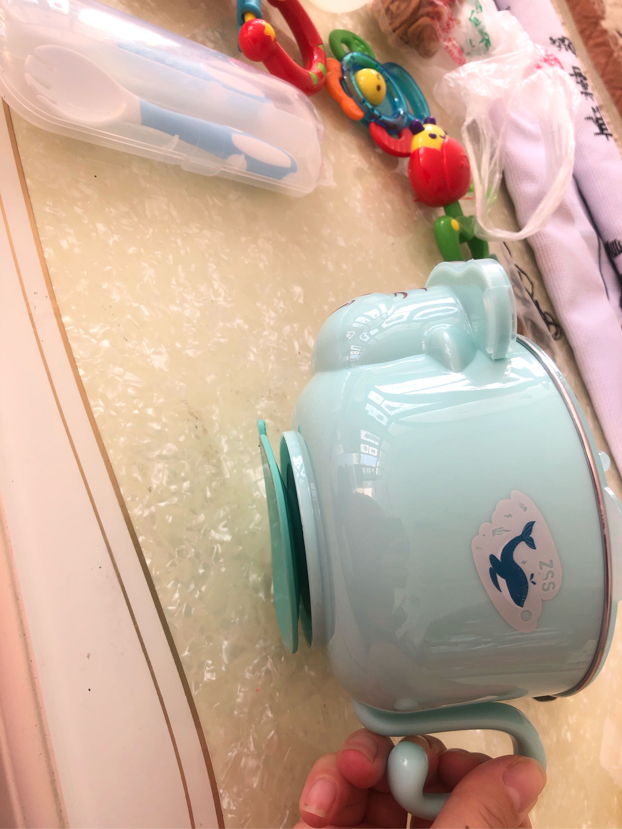 抱着试一试的态度,谁知道真的挺不错,首先说外观,是我喜欢的颜色,给人很舒服的感觉。然后是材质,不得不说很不错,没有味道, 摸着很舒适。再然后是设计,盖子设计的很高大上,不像某一个品牌的很low,注水的地方设计的也很巧妙,双层保护,避免水洒出来,还有就是吸盘,很稳。反正就是很喜欢