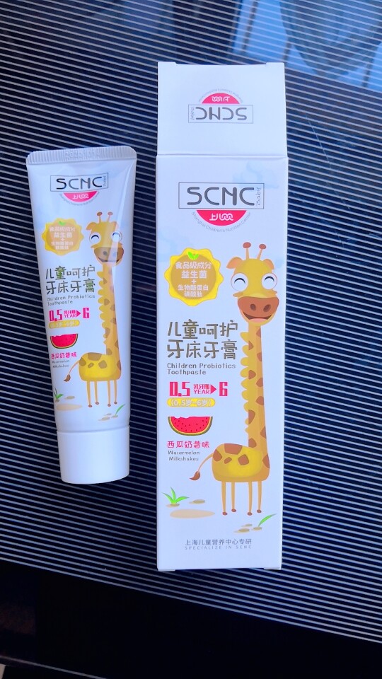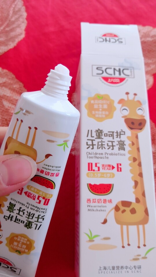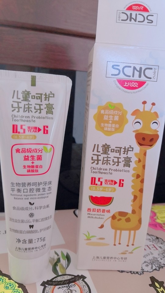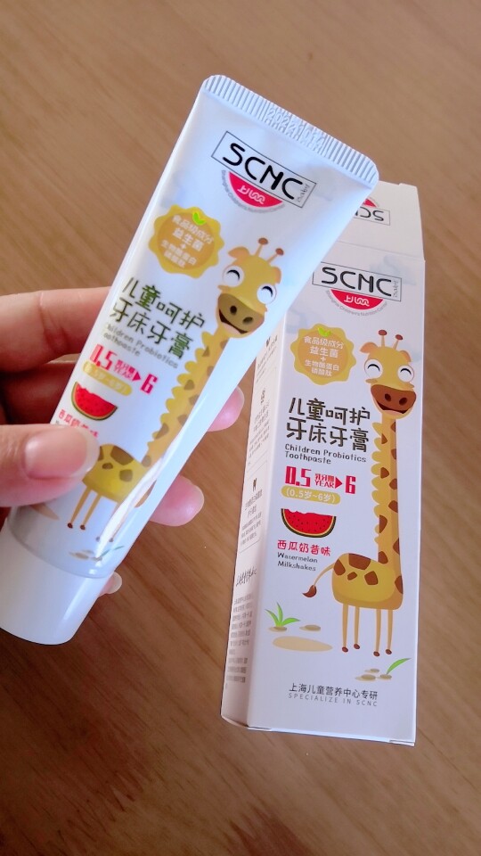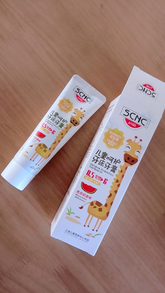 终于收到啦,宝贝自己选的牙膏,炒鸡喜欢!包装很卡通,特别有档次的一款儿童牙膏!食品级成分宝宝用,妈妈很放心,大品牌值得信赖!打开盖子,接开铝塑膜,一股淡淡的西瓜奶昔味,特别好闻!里边含有活性益生菌,有效改善口腔环境,呵护牙龈,预防牙周问题!终于找到了一款适合我家宝宝的牙膏!推荐给宝妈们,真的很不错的一款牙膏!