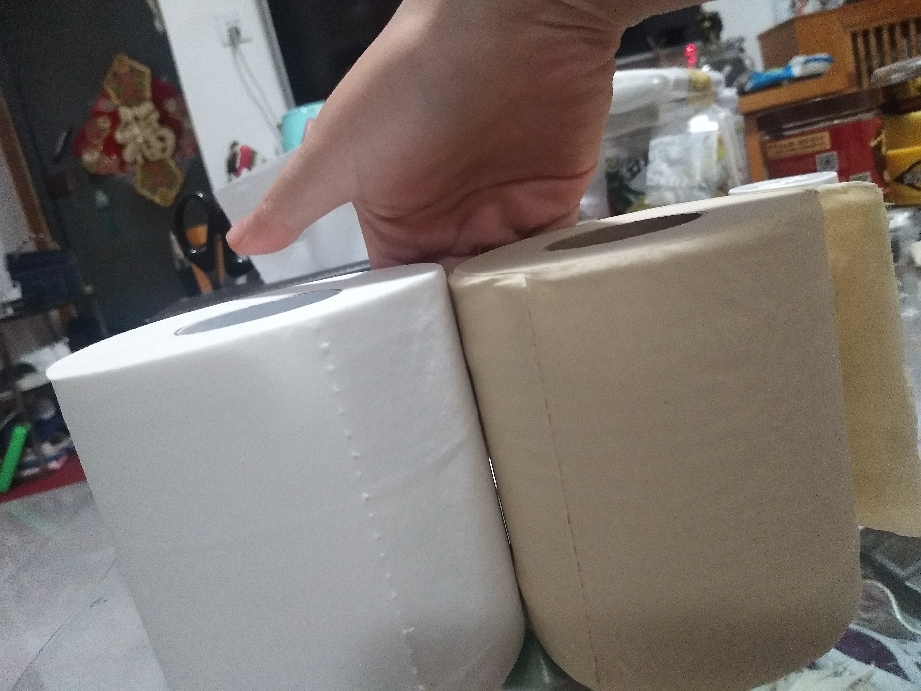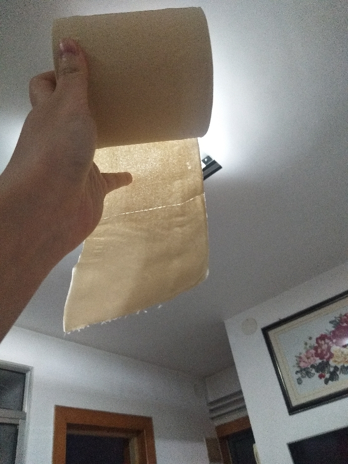 缺点:比平常的牌子的卷纸,短一点点,窄一点点,比较薄吧。看起来没有那么墩壮,再卷胖一点就好了。