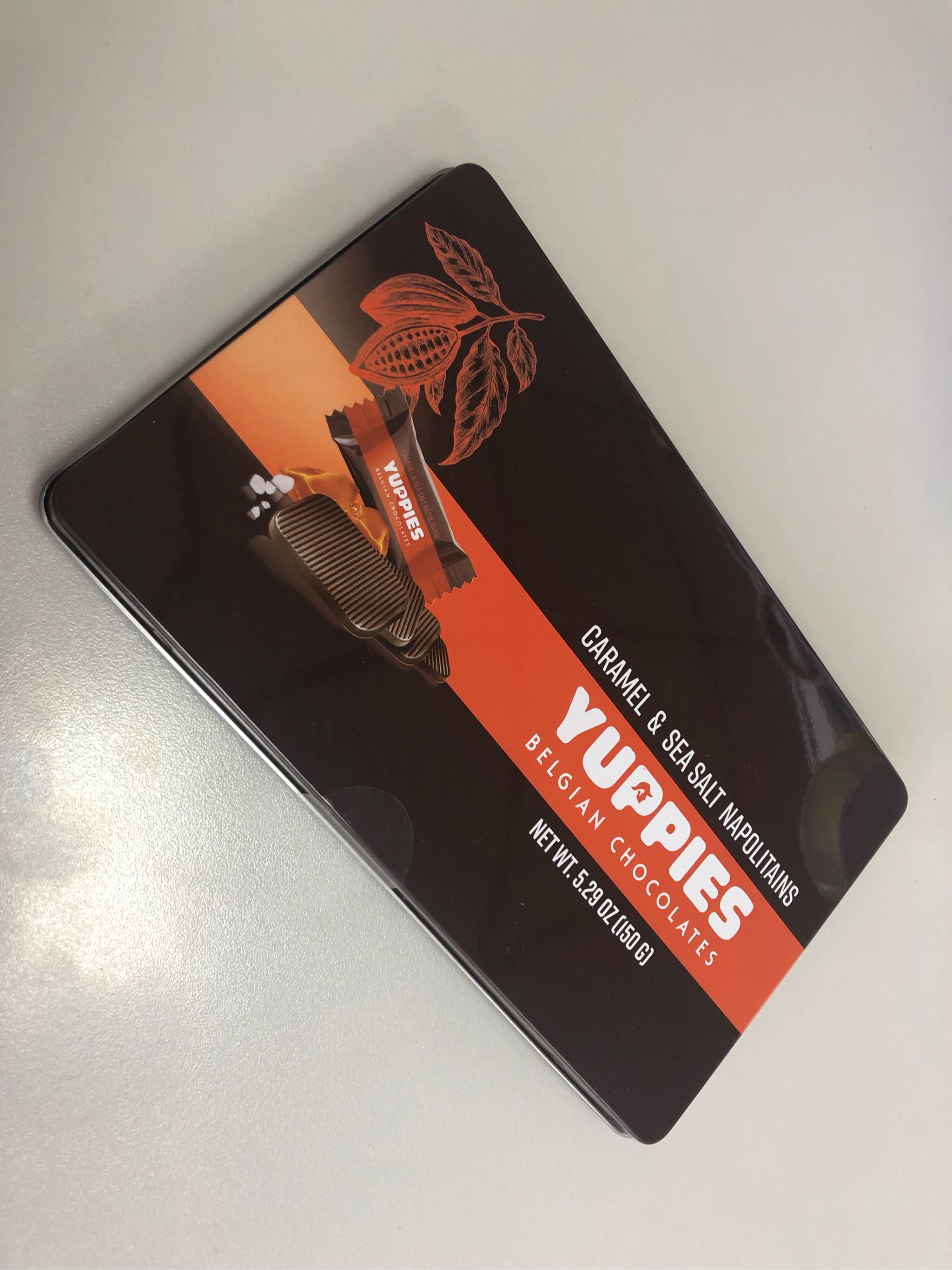 欧洲人特别喜欢吃甜食 巧克力是必备的 巧克力最出名的国家有两个 一个瑞士 另外一个就是比利时了 这款来自比利时的巧克力 焦糖海盐味 铁盒包装 有塑封的盒子精美大气 保质期19年10月 日期非常新鲜