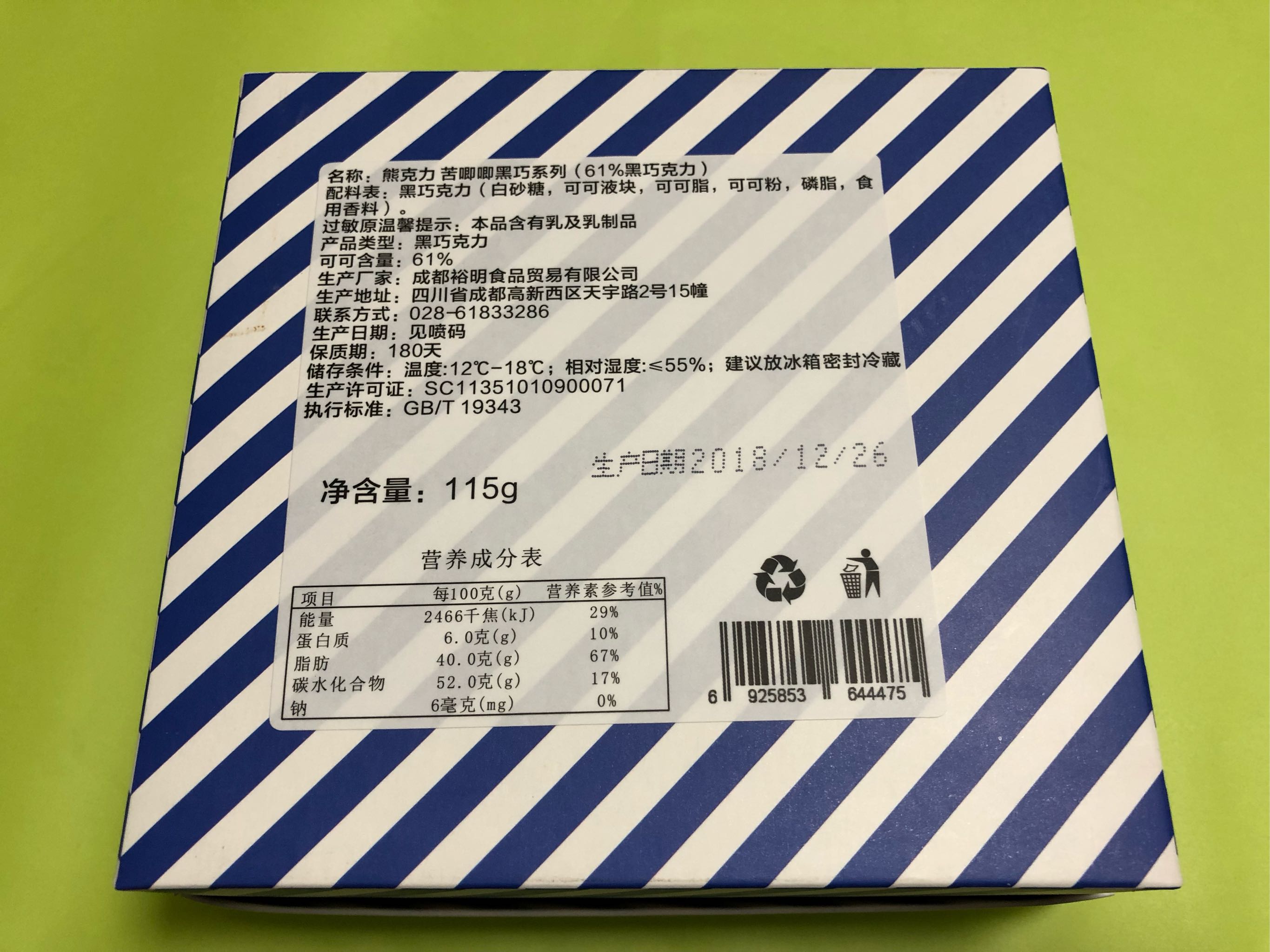 苦唧唧黑巧系列有4种浓度可以选择,我选了61%的,不涩,半甜半苦。