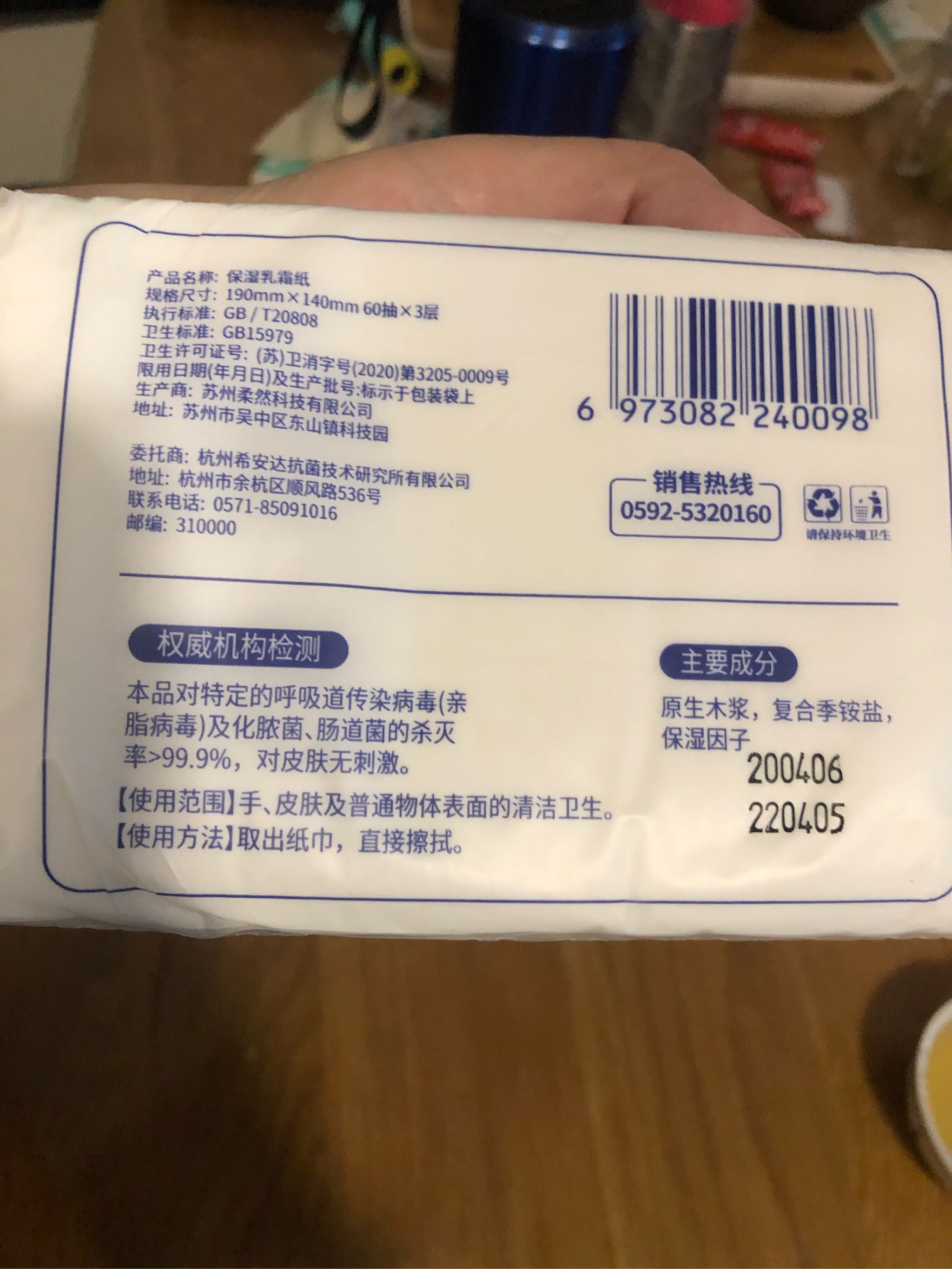 纸巾有湿度又不是特别湿那种,擦手上很舒服,柔软!