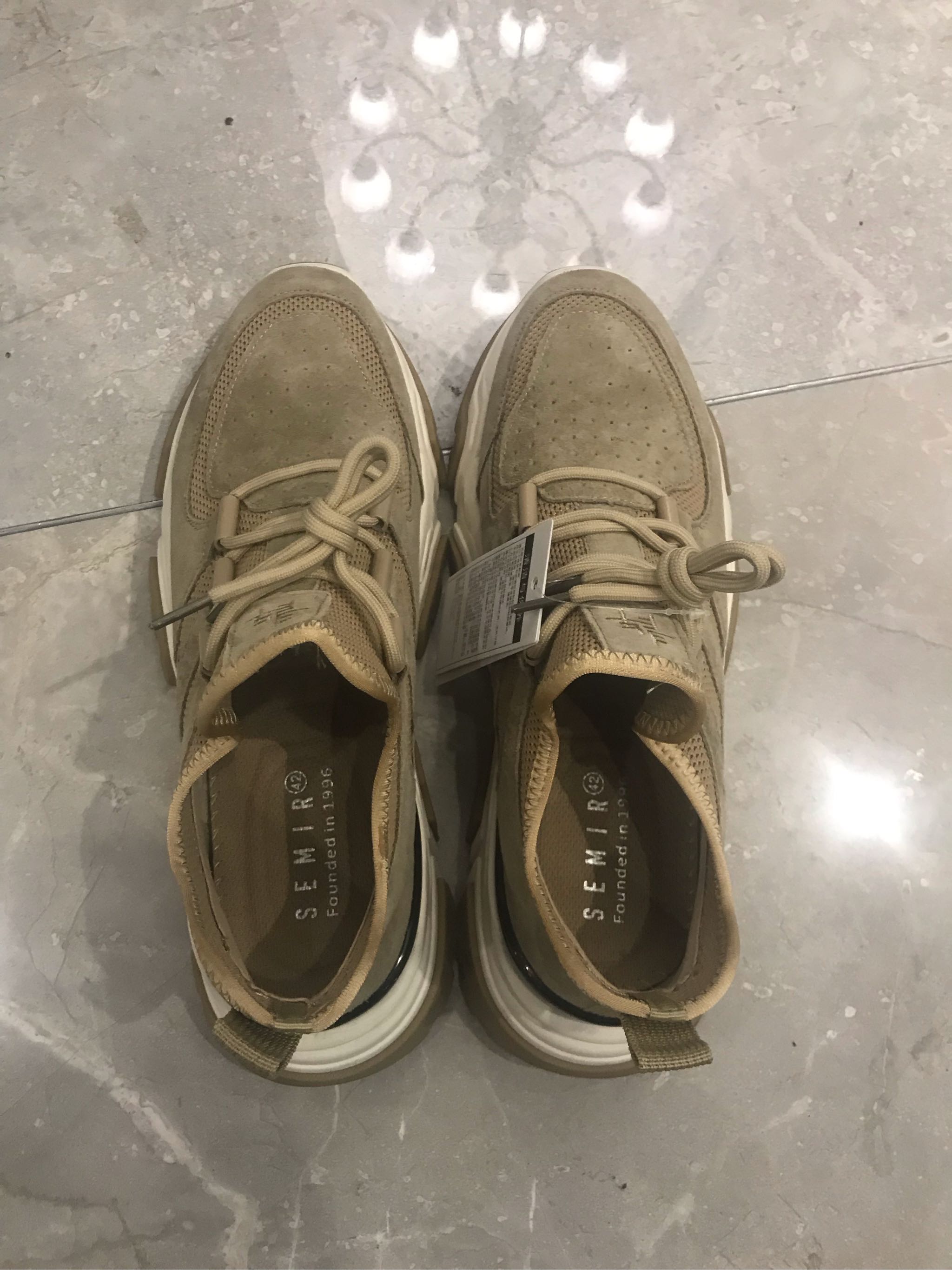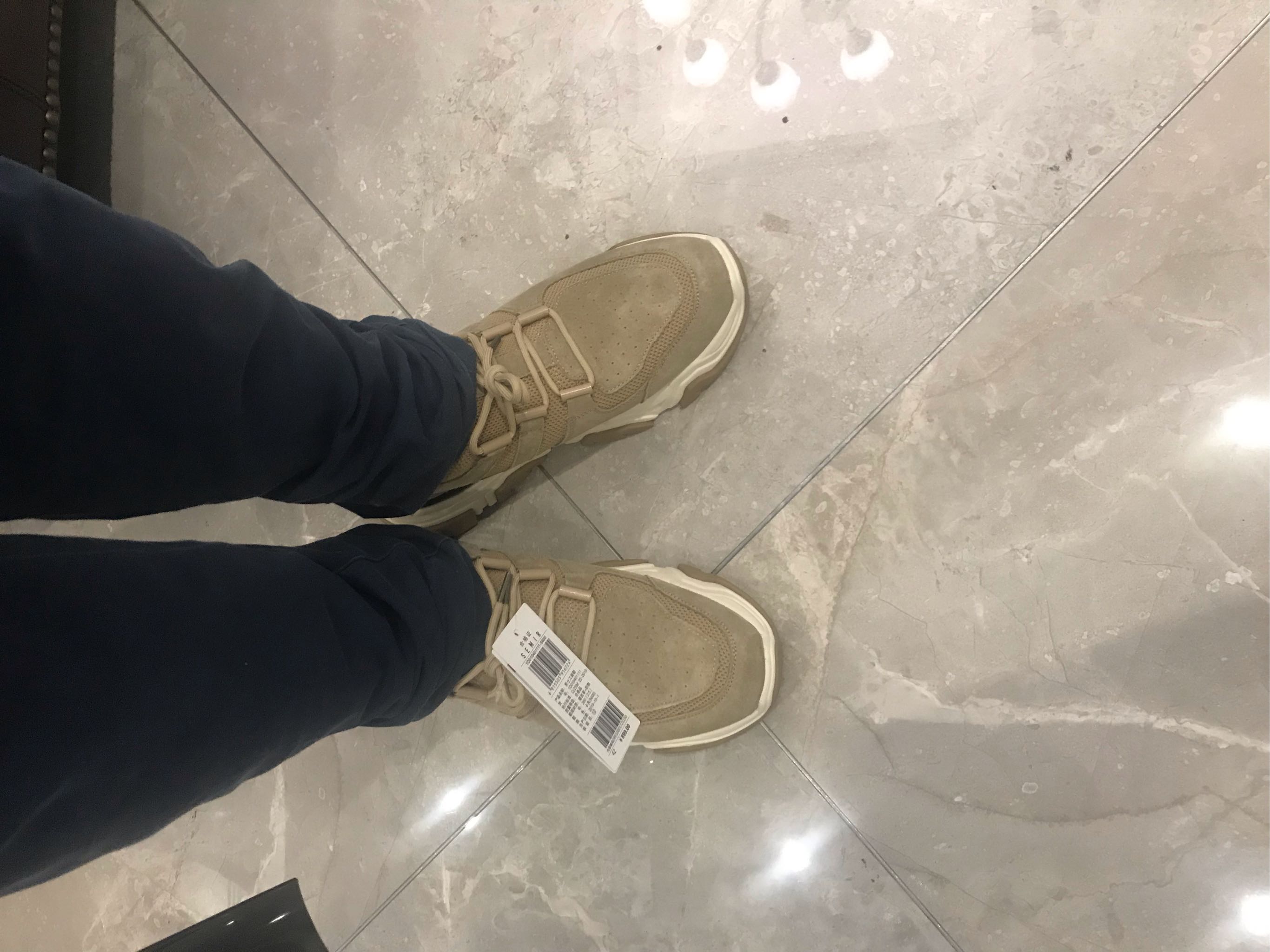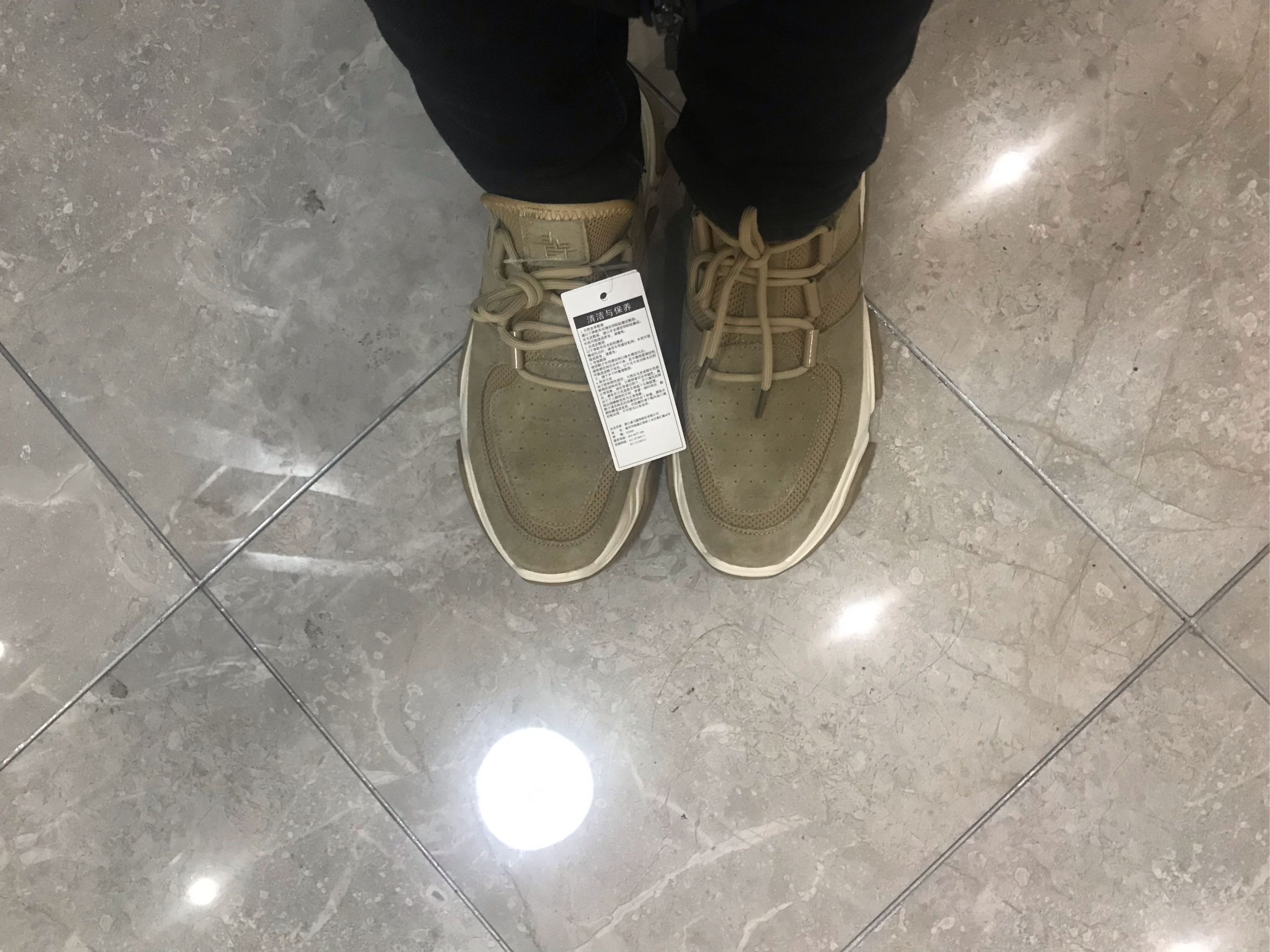 拿出鞋子仔细的检查了,没有一处瑕疵,做工非常好,卡其色的反绒皮与卡其色的透气网面相间,显出鞋子简约并不简单!